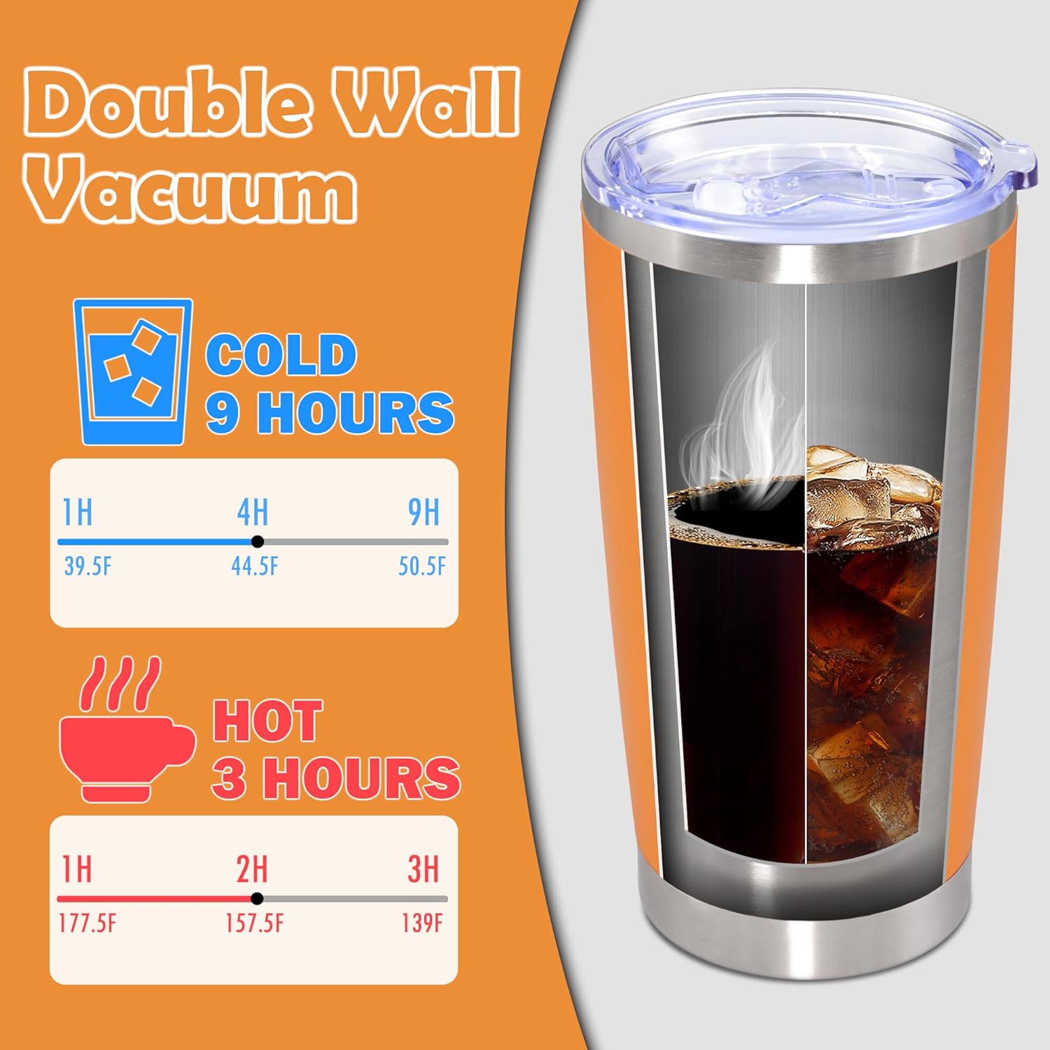 - Insulated Coffee Mug: Coffee tumbler is built with double-layer vacuum insulation technology. Keeps drinks warm for 6 hours and cold for 12 hours.