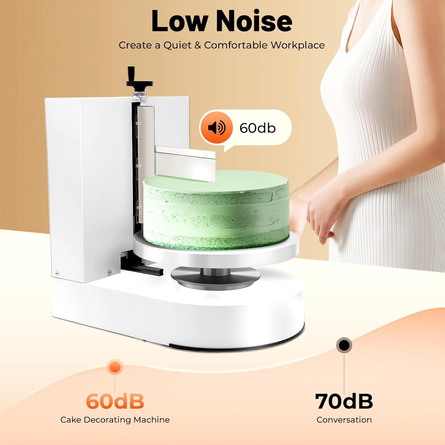 - Efficient Working: Equipped with a pure copper motor and sharp large knives, it delivers excellent performance with high power (200W) and high rotation speed (max. 320rpm), so you can easily smooth the cream on the cake blank in a short time, saving time and effort.