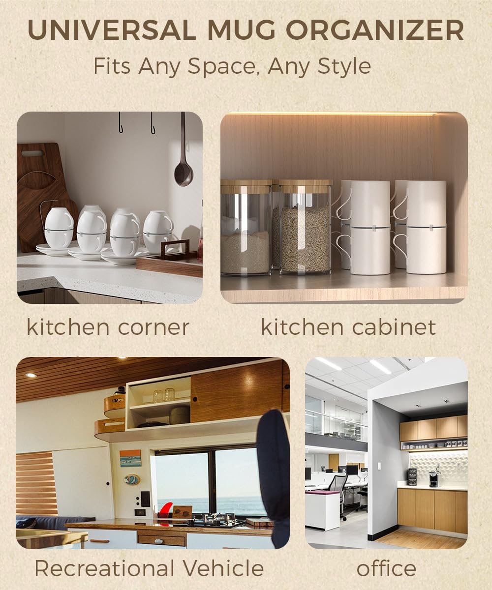- Ideal for Kitchens, Offices, Dorms & More:Perfect for organizing your mugs at home, in the office. Its compact and portable design makes it easy to move and use anywhere you need extra cup storage—no installation required.