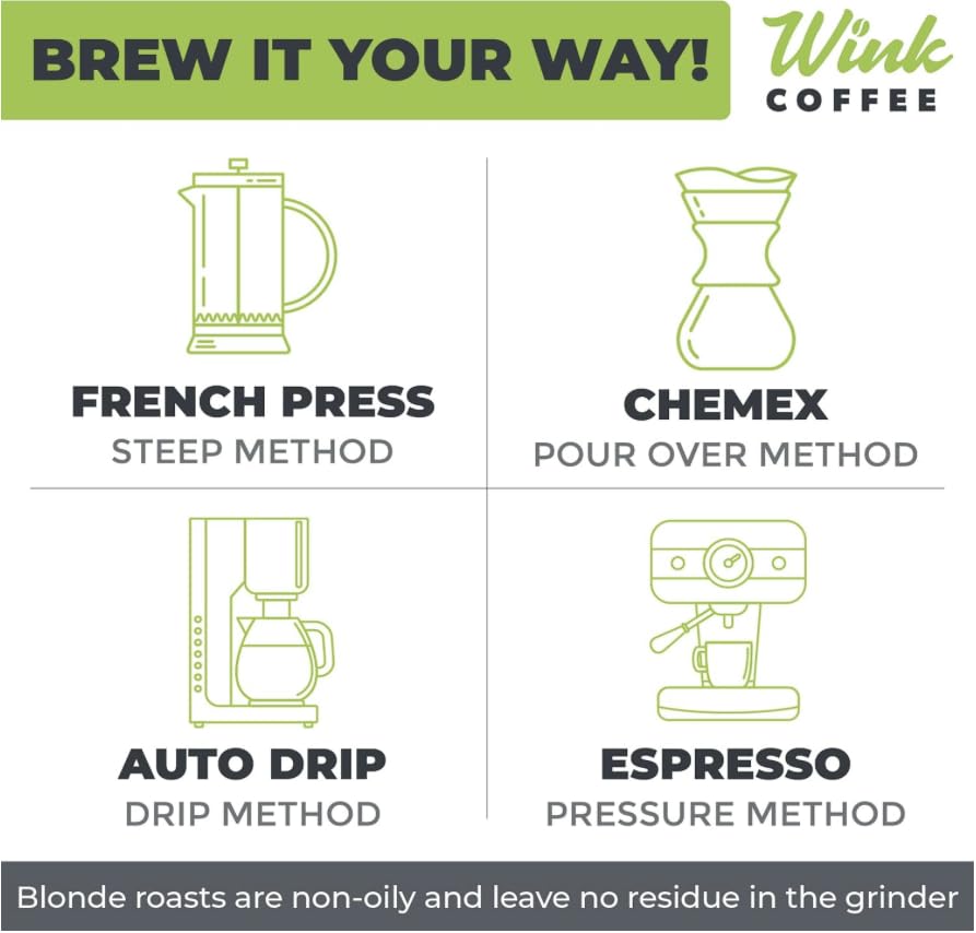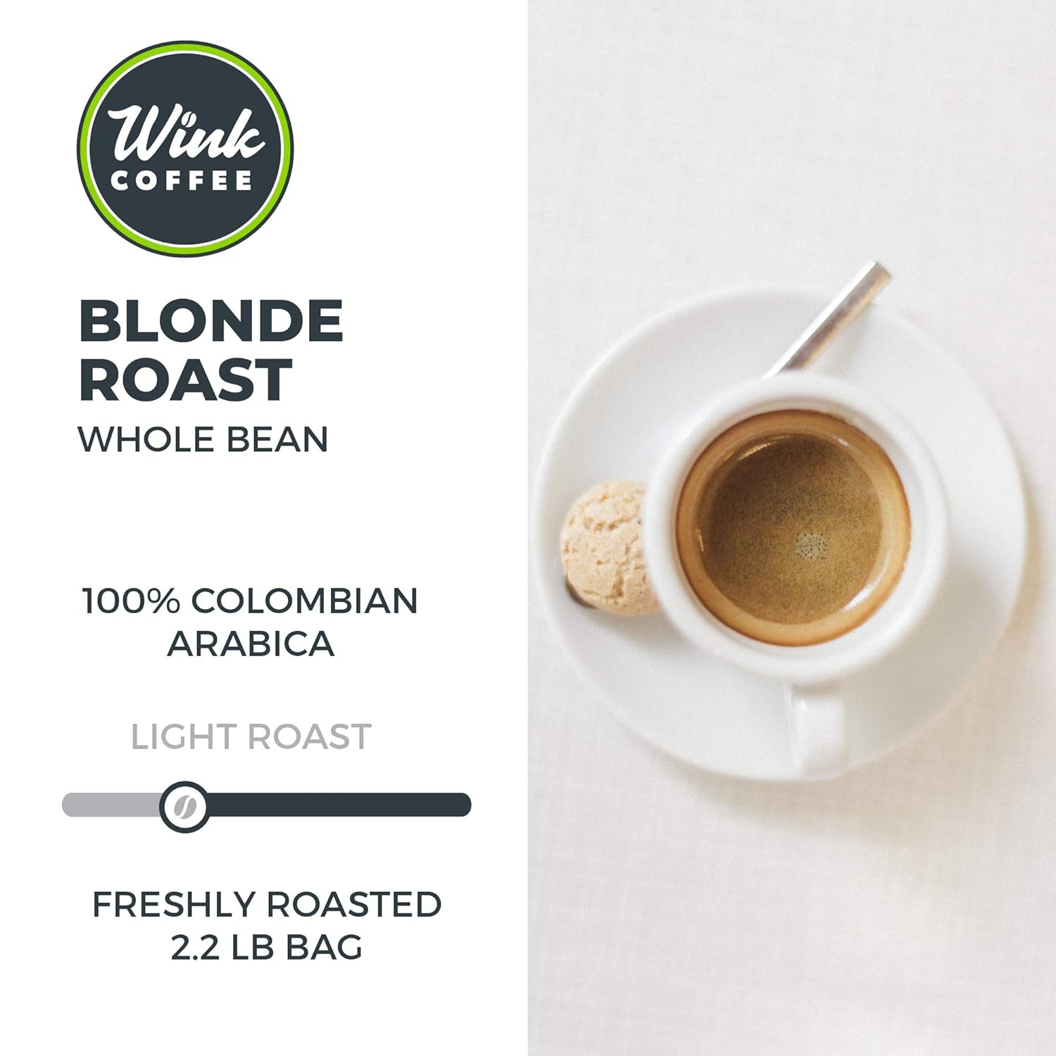 Wink Blonde Roast Ground Coffee, Large 2.2 Pound Bag, 100% Arabica Coffee Beans, Single Origin Colombian, Smooth, Light, and Complex