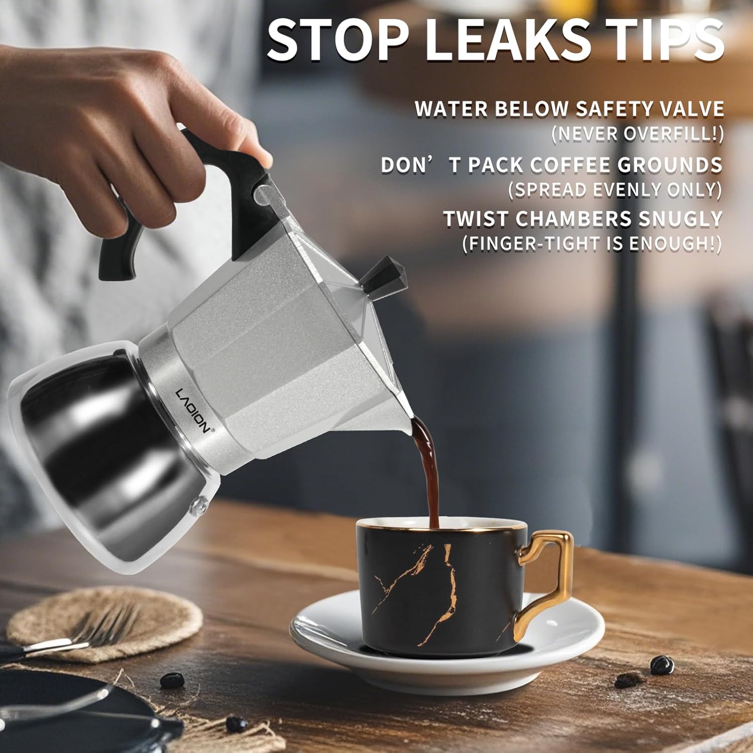- 【A Coffee Lover's Dream】Indulge your senses with the perfect cup of coffee, every time. The LAOION Stovetop Espresso Maker is more than just a kitchen appliance; it's an investment in your daily enjoyment. Experience the difference a truly exceptional coffee maker can make.