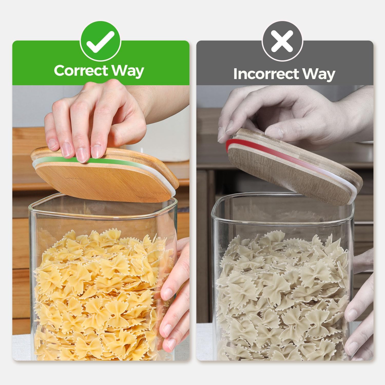 - 【Ideal for Flour & Sugar】Our square glass jars (4.6qt and 1.6qt) feature heavy-duty clip-top lids with silicone gaskets, creating a truly airtight, leak-proof seal. Perfect for keeping flour, sugar, and other baking essentials fresh and mess-free—ideal for passionate home bakers.