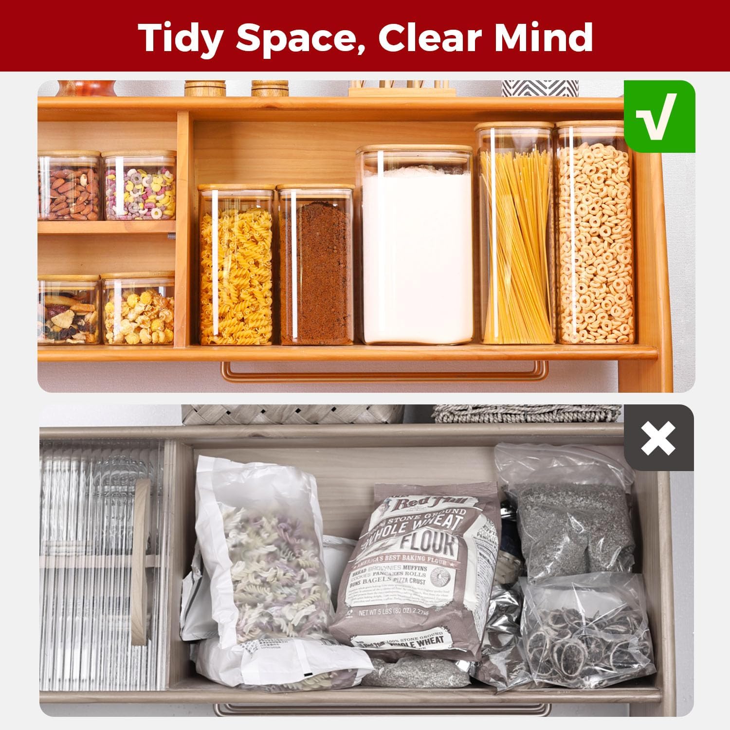- 【Superior Glass Design】Crafted from premium high-borosilicate glass, these clear, square jars offer durability and style. The transparent design lets you easily monitor contents at a glance, combining elegance with practicality.