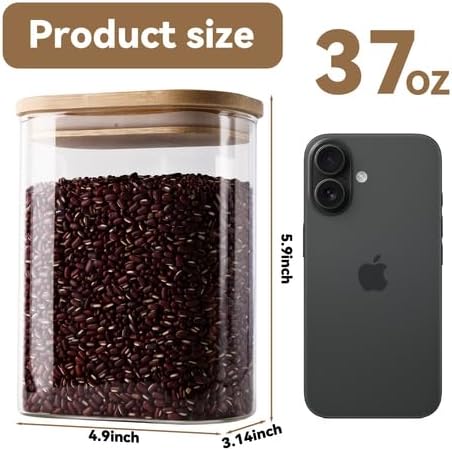 - Sleek & Practical Design: Square, clear glass jars add elegance to countertops/pantries. Easy to identify contents, simplifying meal prep.