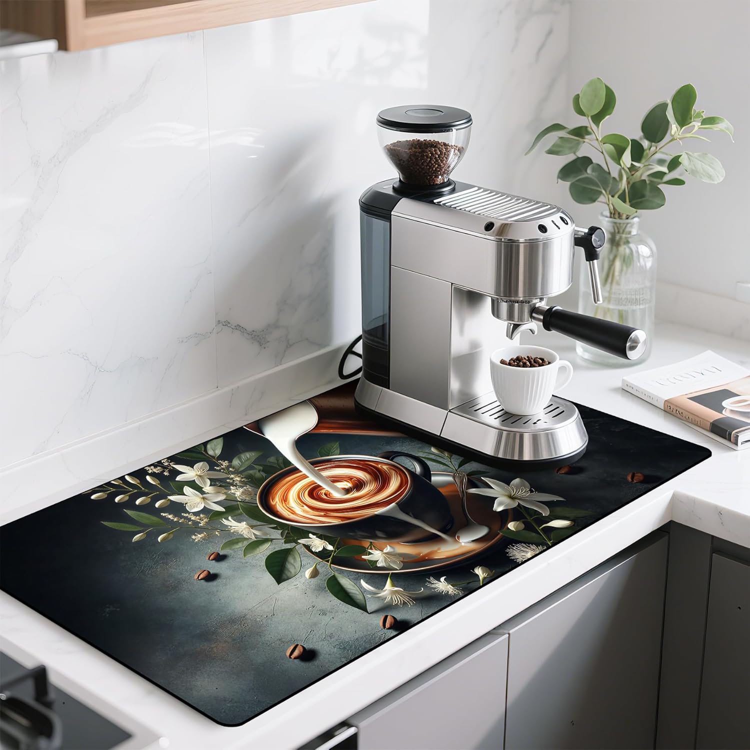 17"x 32" Coffee Bar Mat, Coffee Latte Art Absorbent Dish Drying Mat Cuttable Hide Stain Draining Table Pad for Kitchen Counter, Coffee Bar Accessories