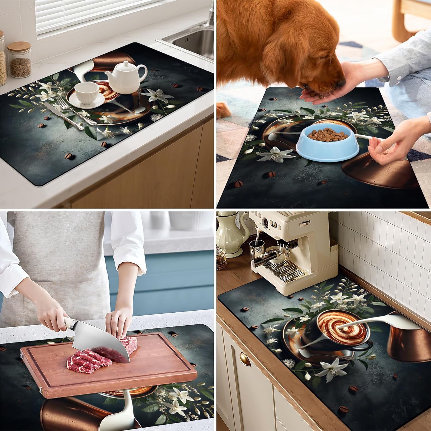 - Excellent Design - Our coffee bar mat is exquisitely designed and can perfectly match various of your kitchen styles. It is an essential accessory for coffee lovers. It can be used as a drying pad for kitchen or as a decorative embellishment for your countertop, coffee station, or desk.