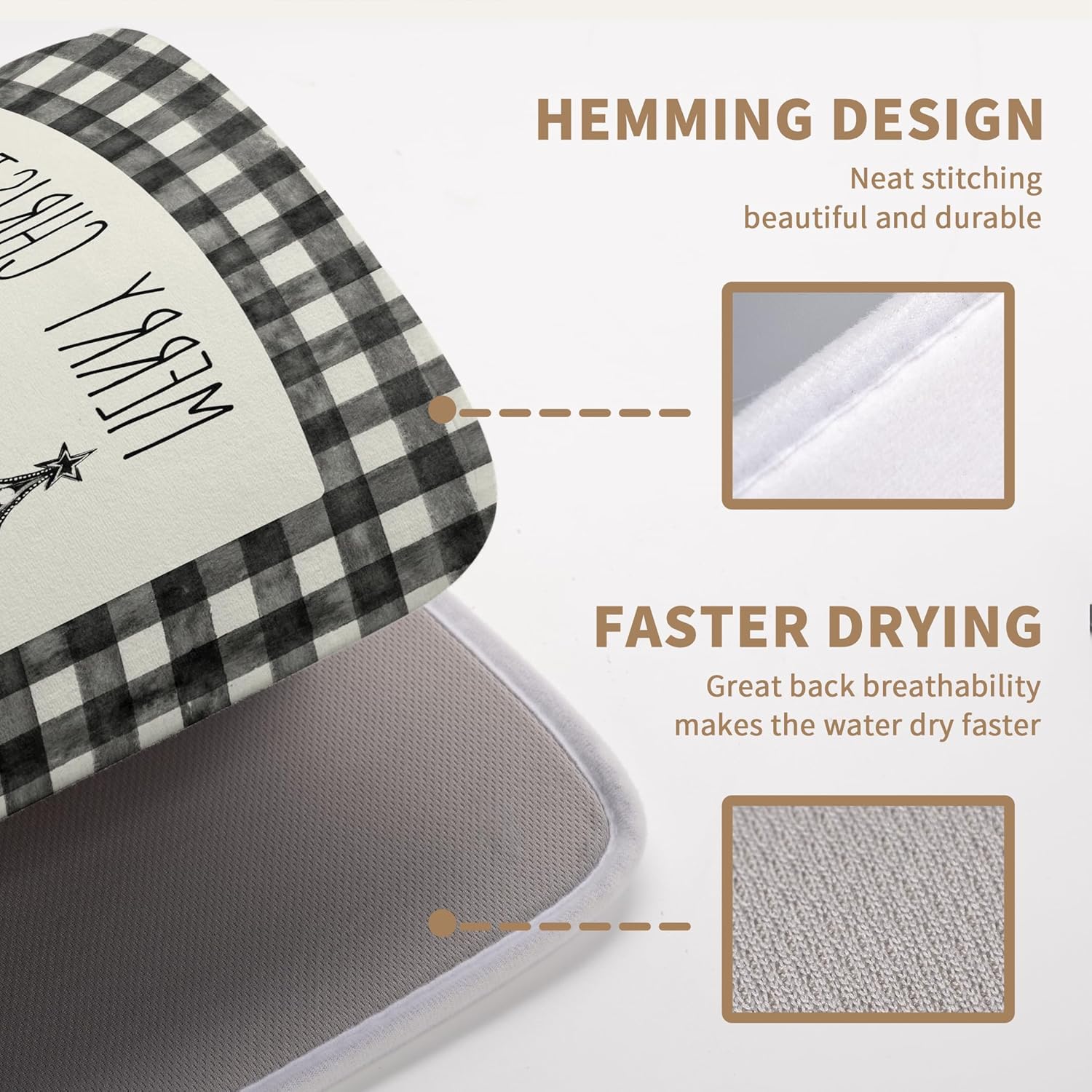 - [Quick Absorption]: Made of absorbent material, our Merry Christmas Buffalo Plaid dish drying mat Winter Xmas Large kitchen mat dish dryer mat for kitchen absorbs water stains quickly, keeping your table top dry and clean, avoiding water stains and leaks, providing you with a pleasant and dry dining or working experience.
