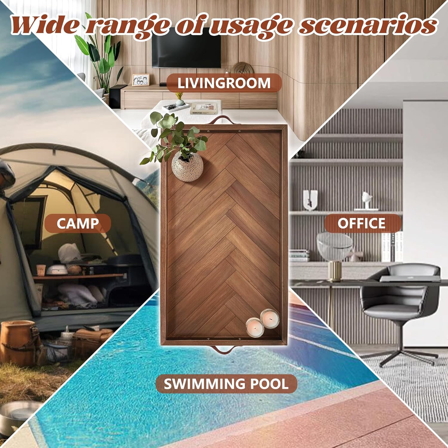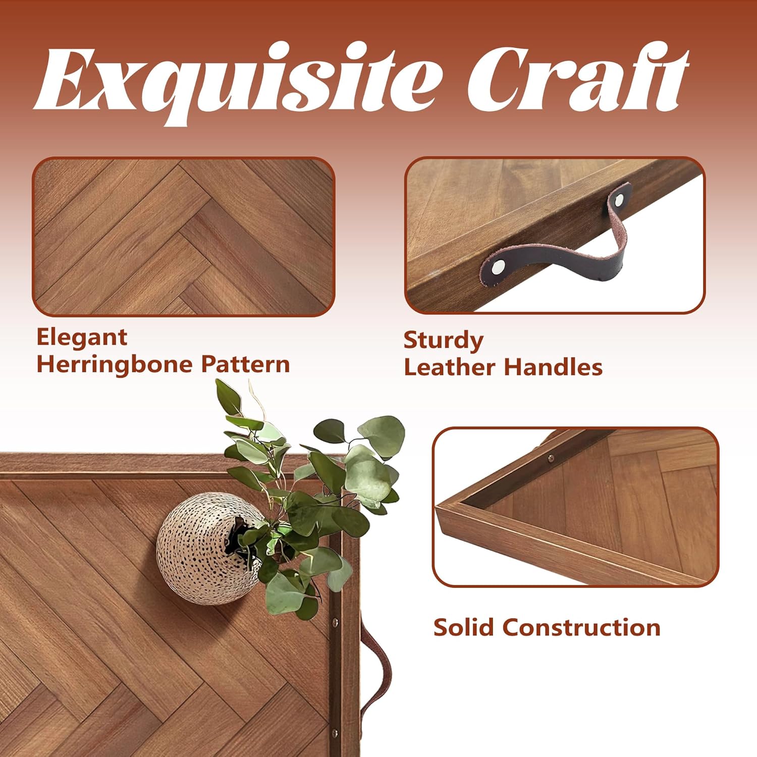 - 【Handcrafted Elegance】Bring warmth and rustic sophistication to your home with our large ottoman tray. Meticulously handcrafted from quality solid wood, this tray boasts an intricate herringbone pattern that adds visual charm and timeless appeal. The natural woodgrain enhances the overall texture, making it the ideal centerpiece for your coffee table, ottoman, or dining table. It's not just a tray—it's a statement of refined craftsmanship that will impress your guests and elevate your decor