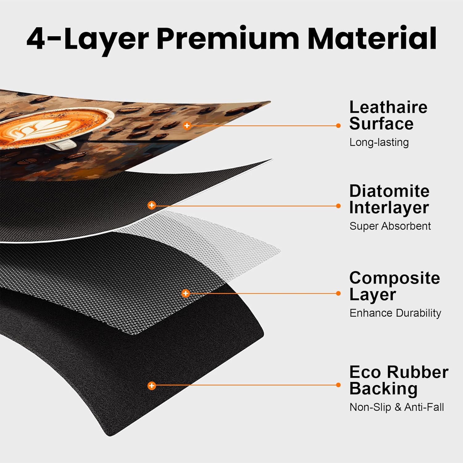 - Premium Coffee Mat - BVBOX 17"x 32" coffee bar mat is made of durable and tear-resistant materials, ensuring long-lasting durability. Its four-layer design features super water absorption, leak-proof and anti-slip performance, providing reliable protection for your countertop.