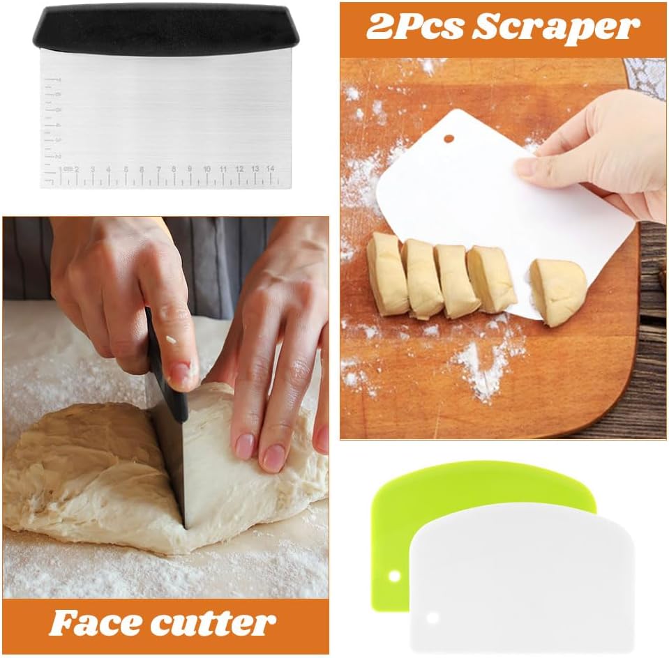 - 【High Qualitys Materials Bench Scraper Kitchen Tool】with high-quality food grade stainless steel, and the 1 Dough Scraper,2 Bench Scraper can effortlessly scrapes and divides dough.Danish Dough Whisk Set economical and environmental friendly.