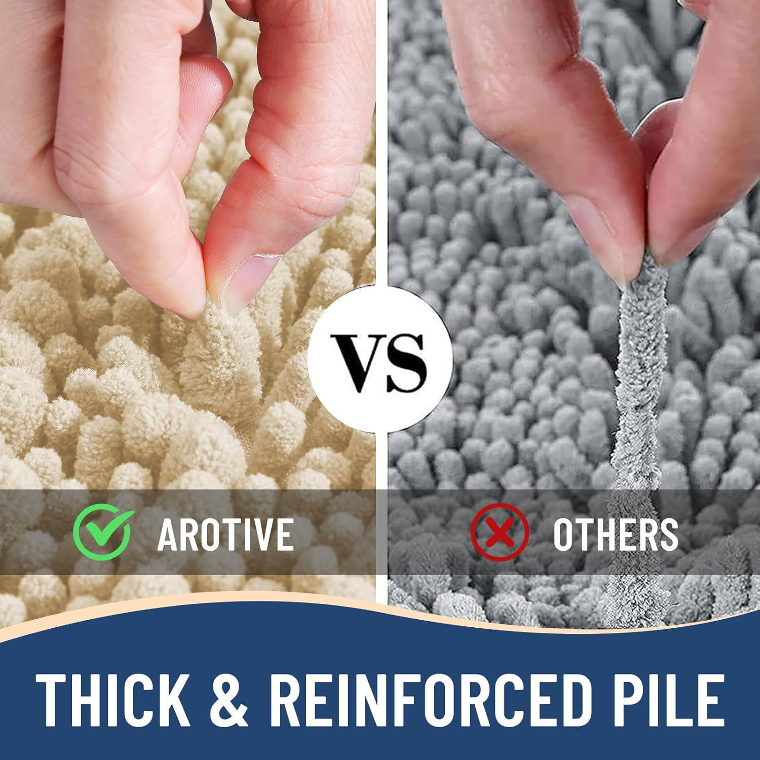 Arotive Luxury Chenille Bathroom Rug Mat, Extra Soft Thick Absorbent Shaggy Bath Rugs, Non-Slip Machine Wash Dry, Plush Bath Mats for Bathroom, Shower and Tub, 24x16, Cream Beige