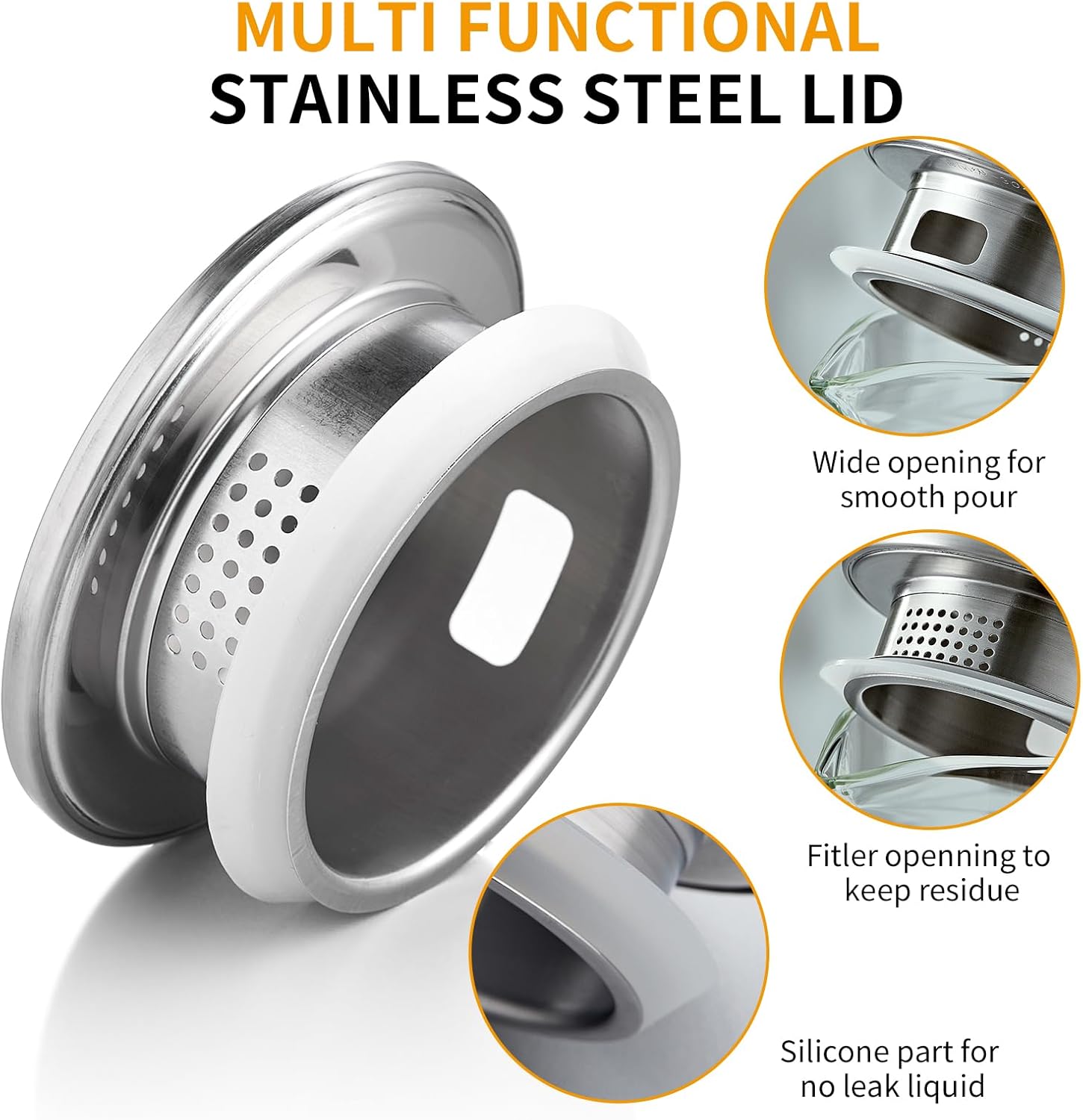 - ✔ Sleek Stainless Steel Lid: Features a leak-proof stainless steel lid with a smooth pouring spout, offering both style and spill-free functionality.