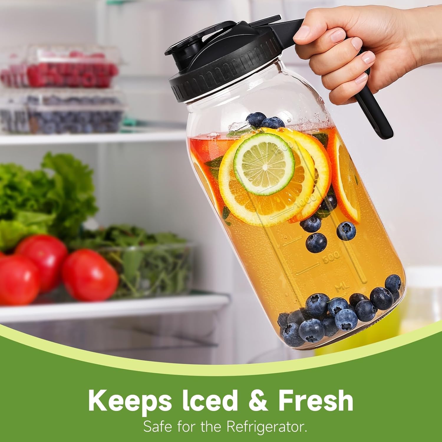 2-Pack 64oz Glass Mason Jar Pitchers with Leak-Proof Lids and Handles – Wide Mouth Design for Sun Tea, Cold Brew, Lemonade, Juice, Iced Tea, and Water