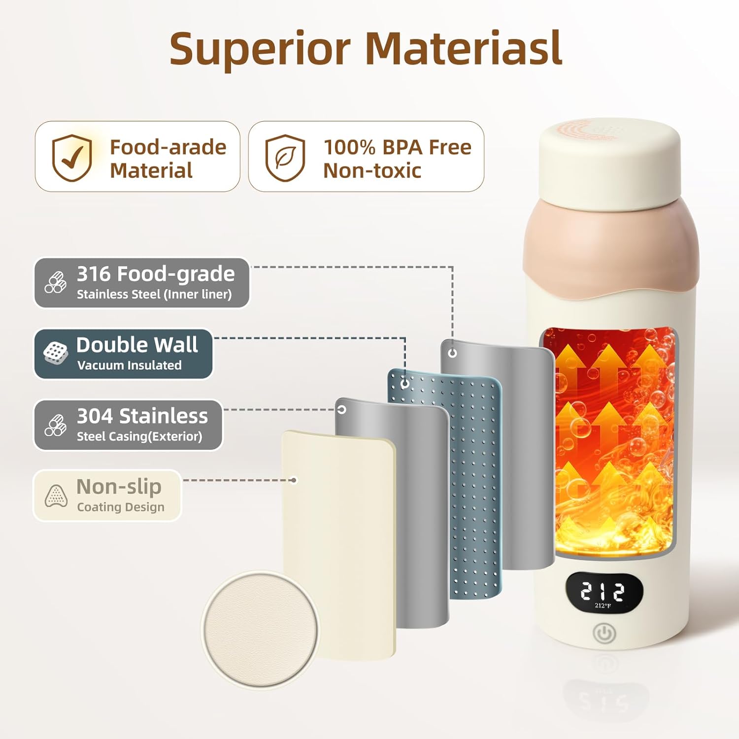 - Special Feature : Food-Grade 316 Stainless Steel,BPA Free, One-click Temperature Control, 4 Smart Preset Temperature,LED Display,Automatic Shut-Off, Double Wall,Boil Dry Protection, Leakproof Design, Portable & Lightweight Food-Grade 316 Stainless Steel,BPA Free, One-click Temperature Control, 4 Smart Preset Temperature,LED Display,Automatic Shut-Off, Double Wall,Boil Dry Protect… See more