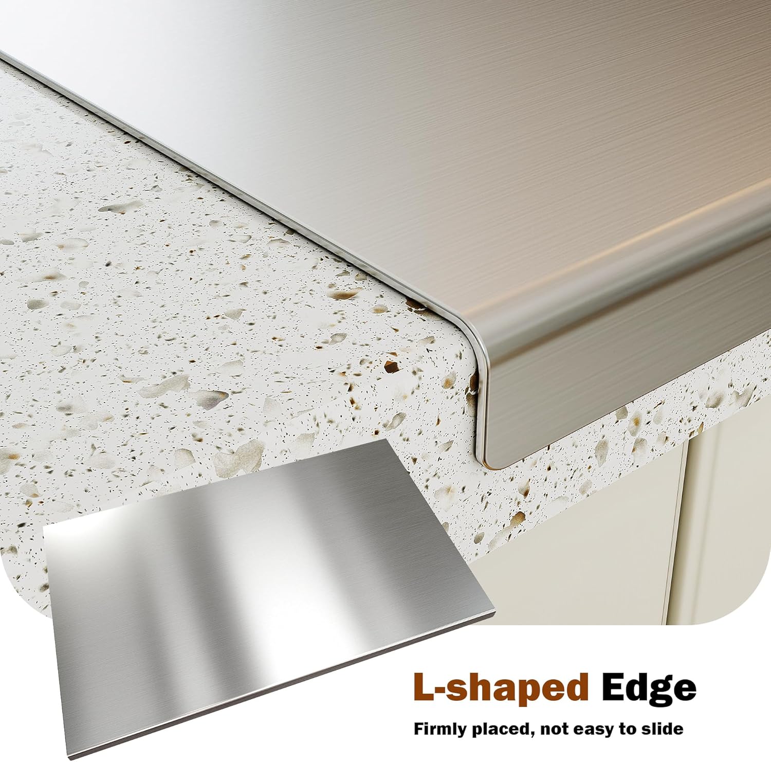 - 【Stainless Steel Material】The 304 Stainless Steel board is sturdy enough to stand high pressure without hurting the surface. The Thickness is 0.06”, 35.4" L X 22.8" W. Note: There is a film on the front and back of the cutting board; After receiving it, peel the surface film before use