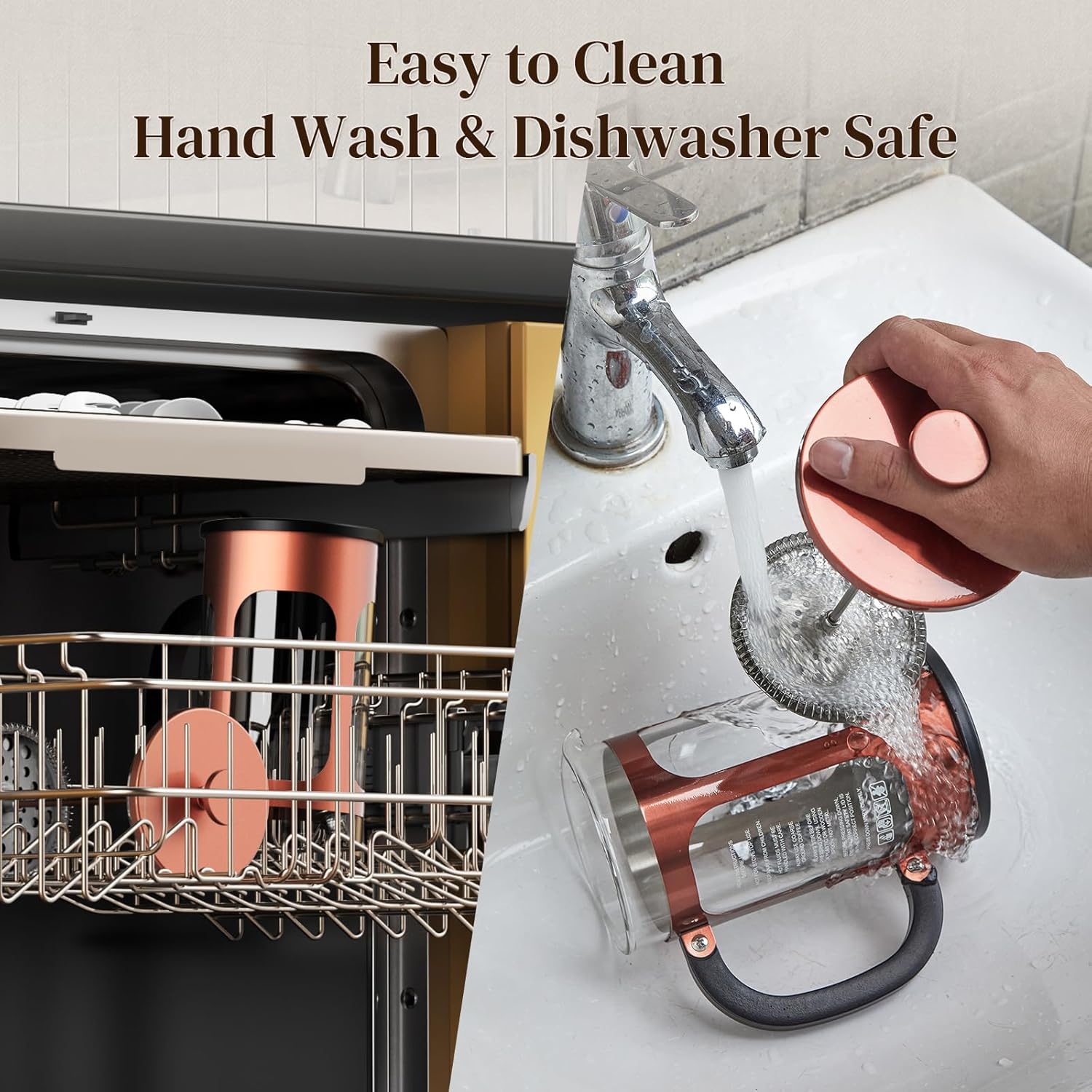 - Easy to Clean: Designed for hassle-free cleanup, the glass carafe disassembles easily for handwashing, while key components like the plunger and filter are dishwasher-safe—ensuring a thorough, convenient clean after every brew