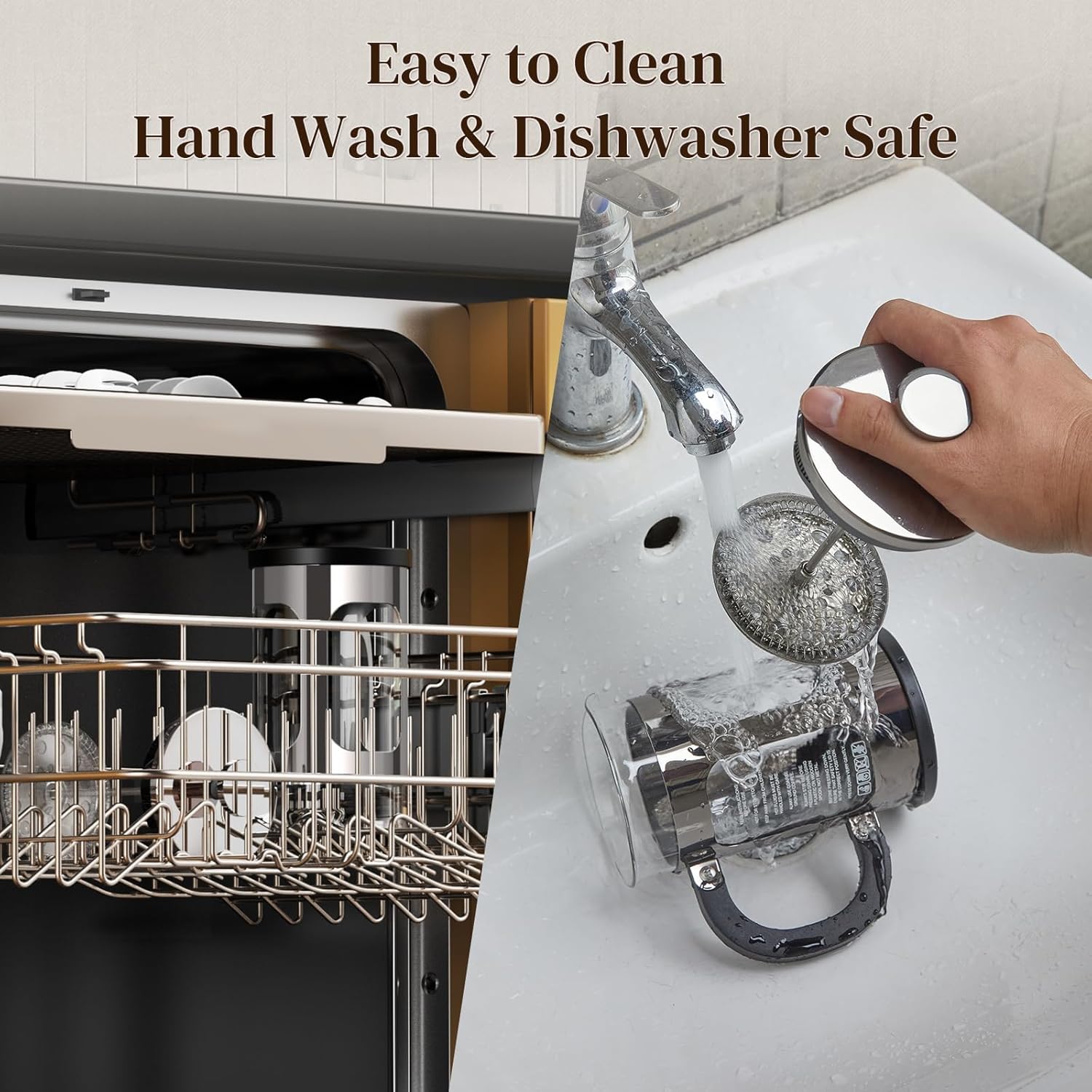 - Easy to Clean: Designed for hassle-free cleanup, the glass carafe disassembles easily for handwashing, while key components like the plunger and filter are dishwasher-safe—ensuring a thorough, convenient clean after every brew