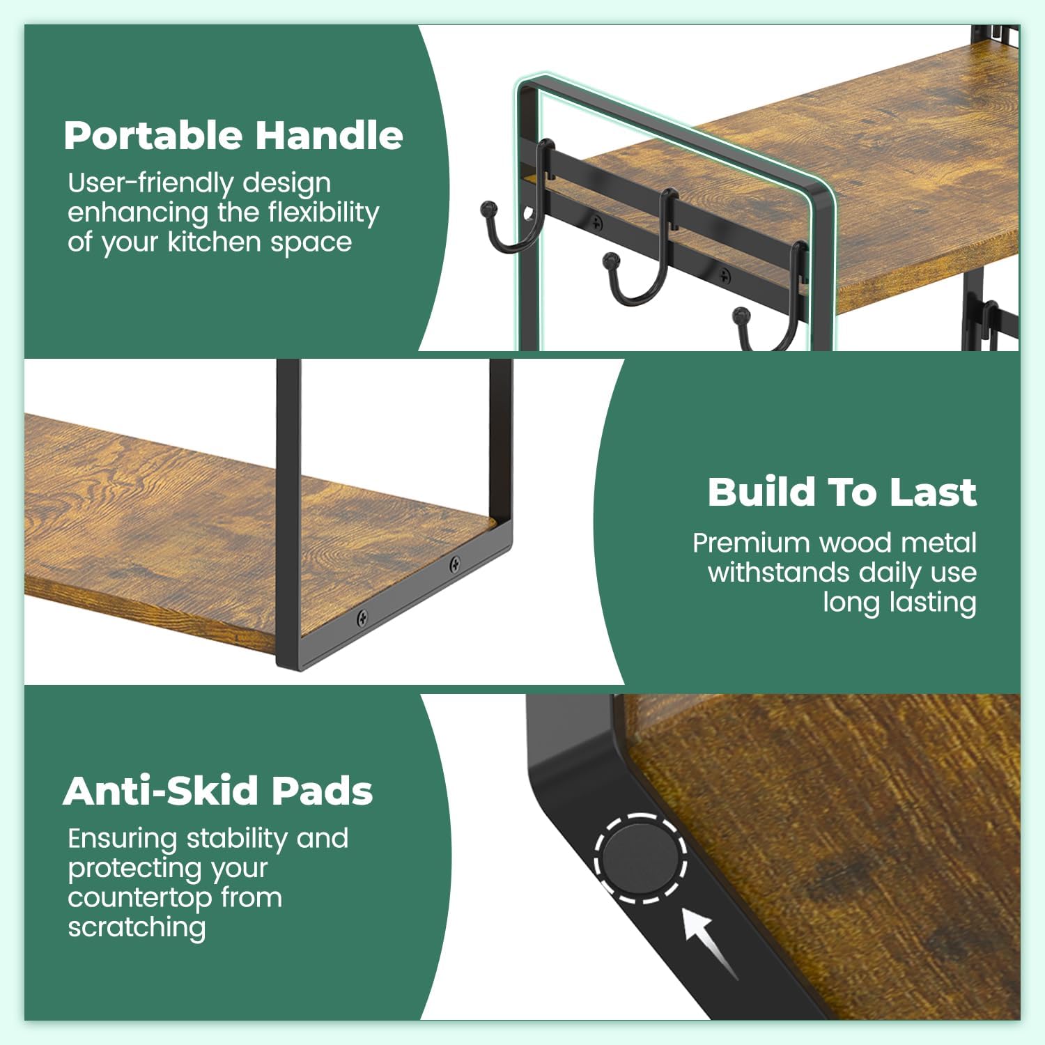 - Stylish and Functional: Featuring a vintage wood design, our coffee mug holder stand adds a rustic charm to your coffee station. It complements various decor styles, making it a beautiful addition to your kitchen or office coffee nook organizer