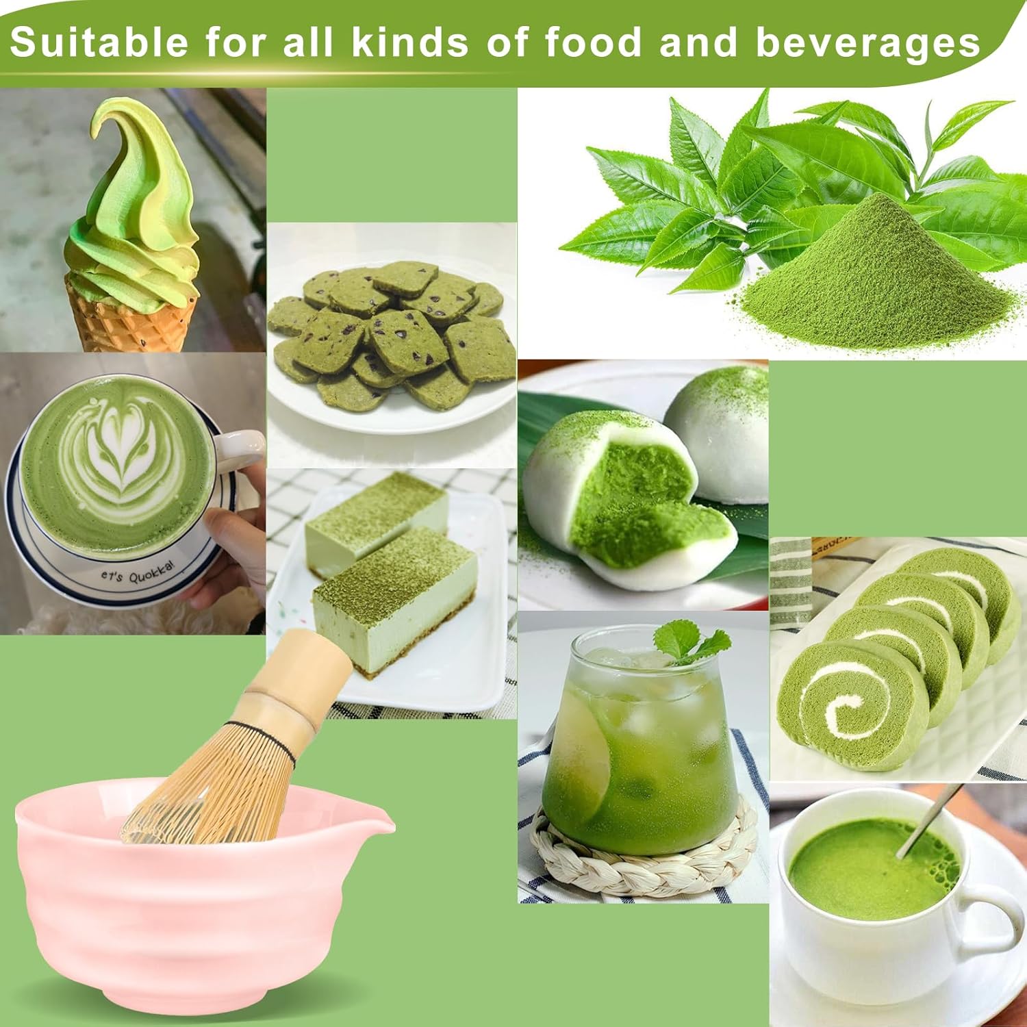 7 Pcs Matcha Whisk Set, Matcha Set with Ceramic Bowl, Whisk, Bamboo Spoon, Whisk Holder, Sifter, Scoop and Holder, Matcha Kit for Matcha Lover (Pink)