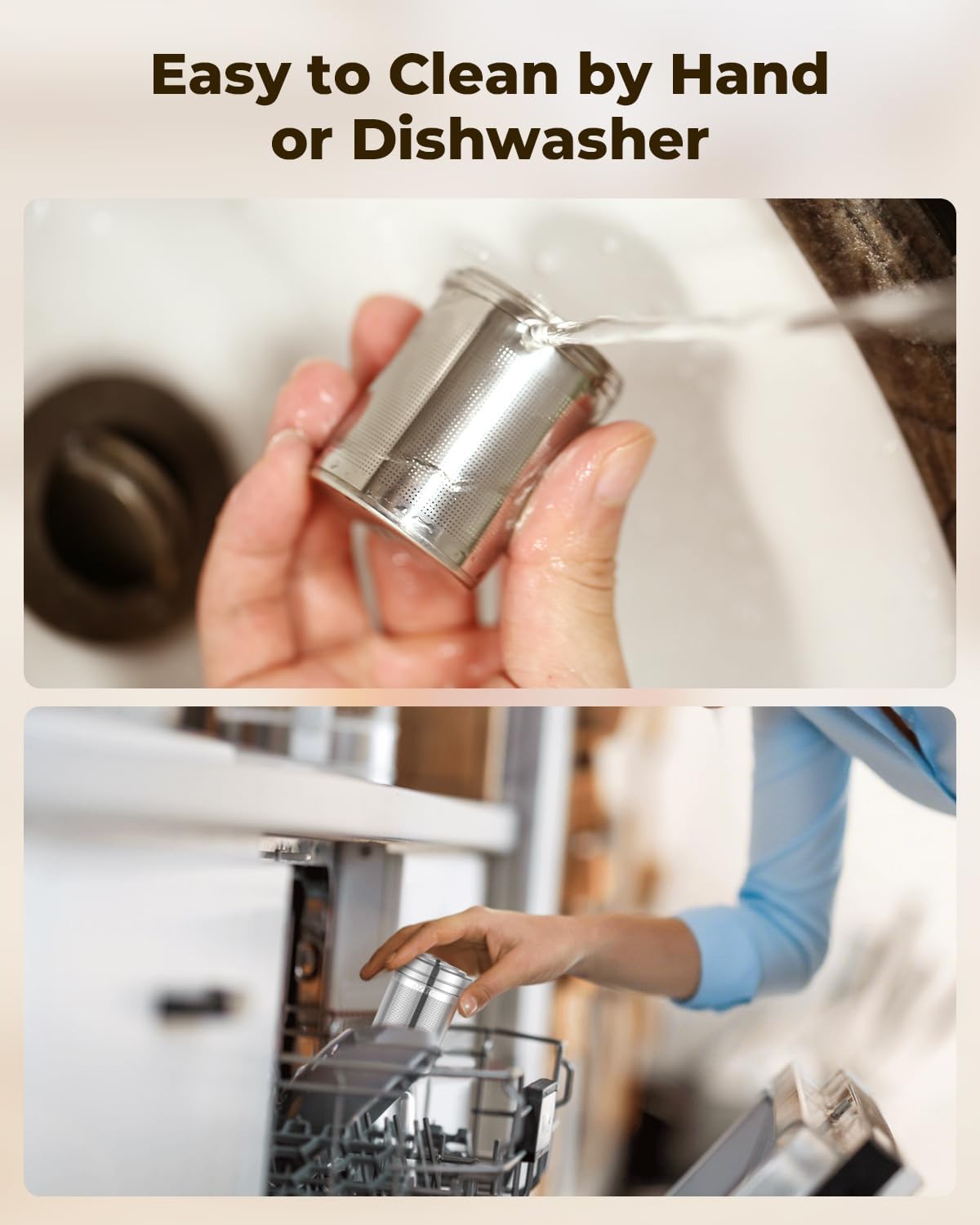 - Easy to Use & Clean: Our updated slim threaded lid screws on effortlessly, ensuring a tight, secure seal to lock in all tea particles— leaving no particles out of the top during brewing! After use, these loose tea strainers clean up quickly with water or in the dishwasher. Plus, each tea steeper includes a mini drip tray to rest on, preventing spills and keeping surfaces tidy after brewing