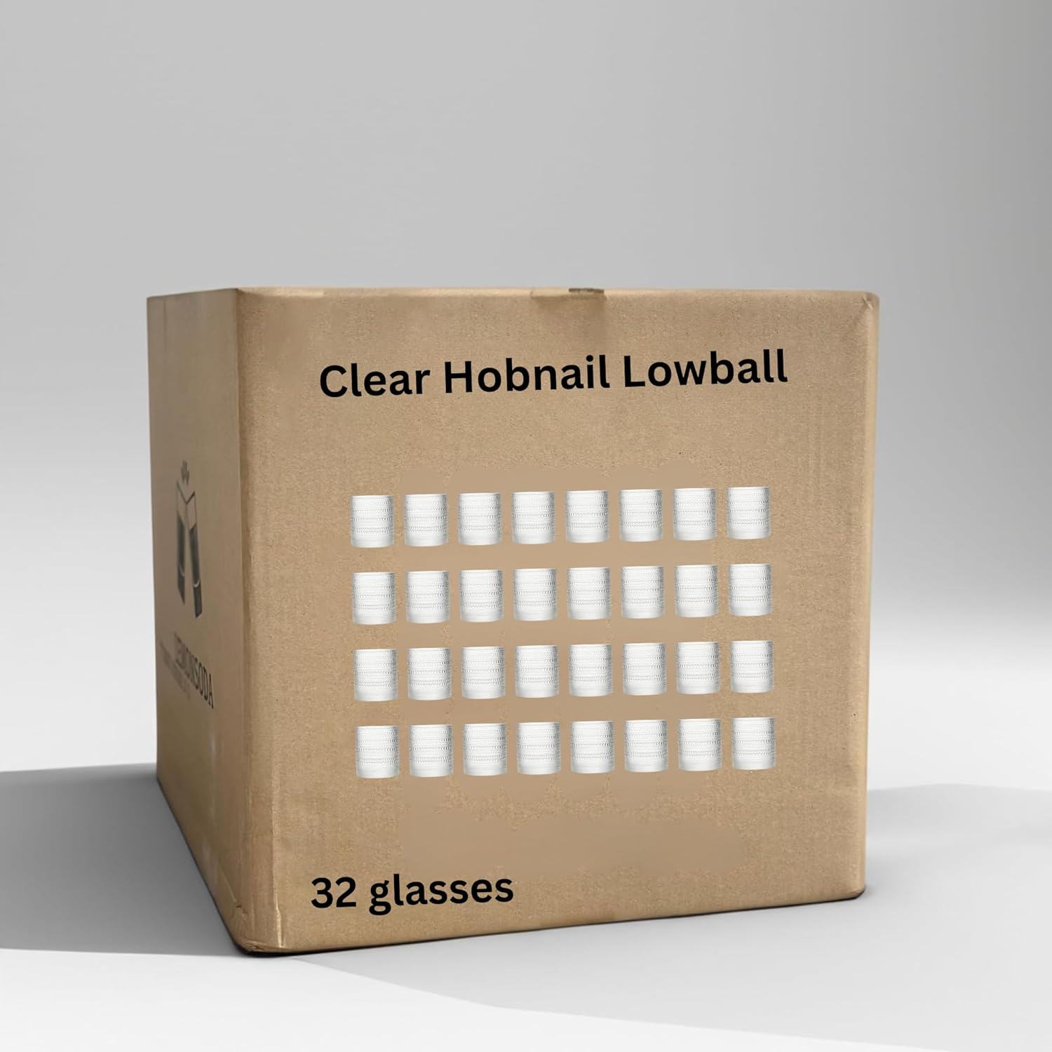 LEMONSODA Vintage Clear Hobnail Drinking Glasses (Lowball 10oz, Set of 32) [2223]