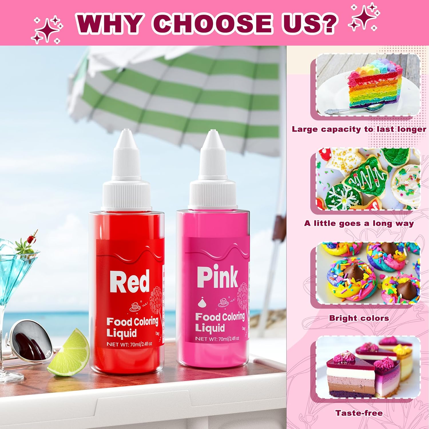 - 70ML LARGE CAPACITY - Each bottle of our food dye liquid has a large capacity of 70ml(2.4 fl. oz), which can be consumed for a longer time than others small-capacity liquid edible paint. Whether it is daily creation by home baking enthusiasts or batch production by professional bakers, it can meet long-term use needs.