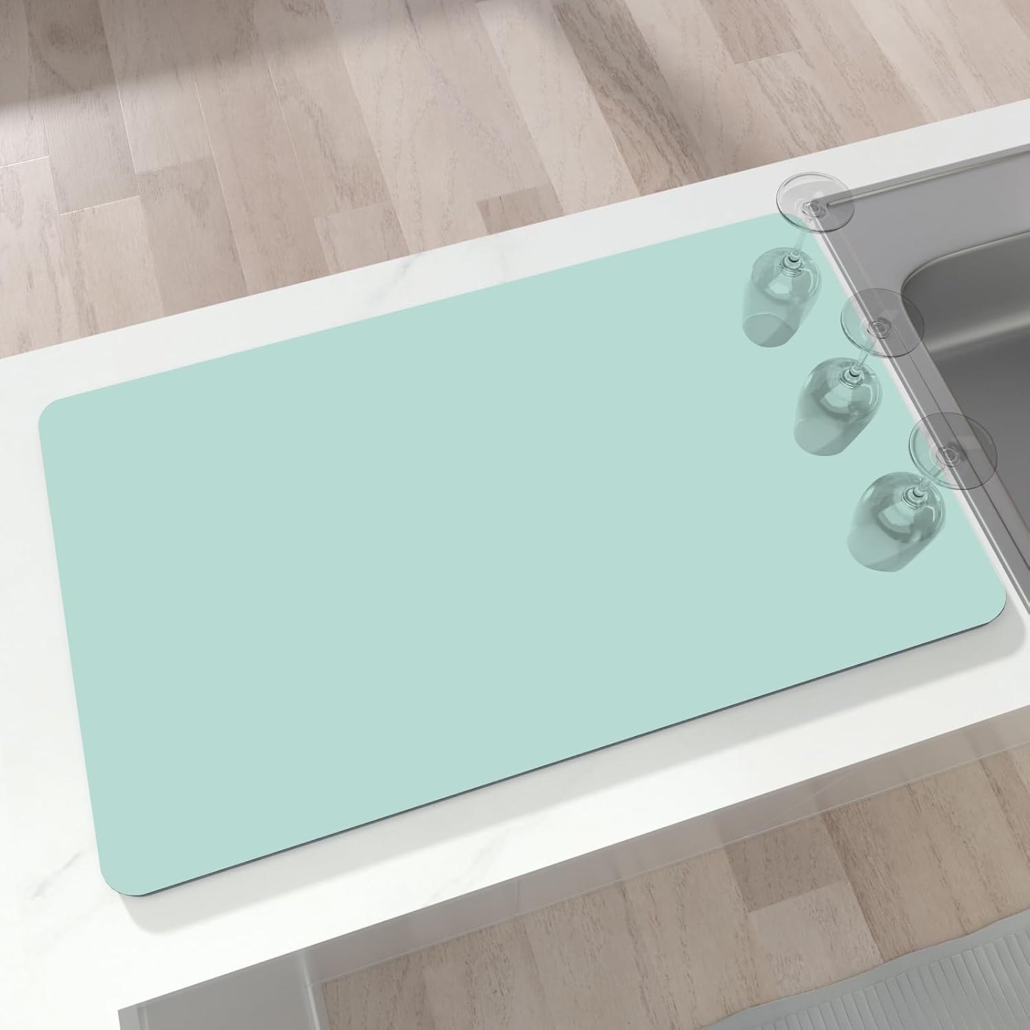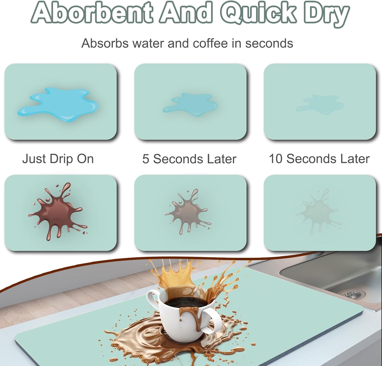Dish Drying Mat 16" X 24", Super Absorbent & Cuttable Coffee Mats for Countertop, Kitchen Counter Mat Fits Under Coffee Maker or Machine, Hide Stain Drying Pad for Dish Drying Rack, Green