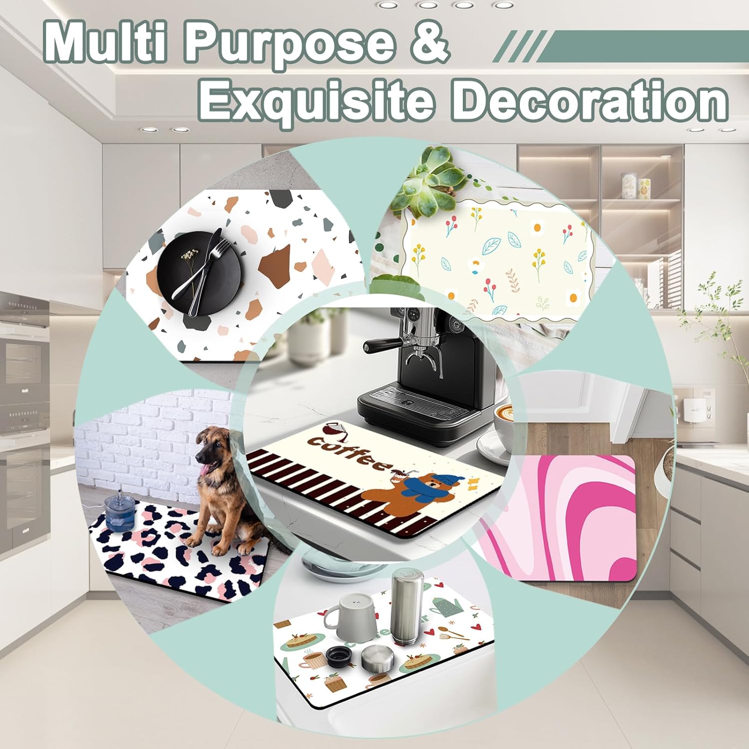 - QUICK & EASY CLEANING: Maintaining your coffee bar drying mat for countertop is hassle-free. Just wipe spills with a damp cloth or rinse it under water. Remember to hang it to air dry completely for optimal performance