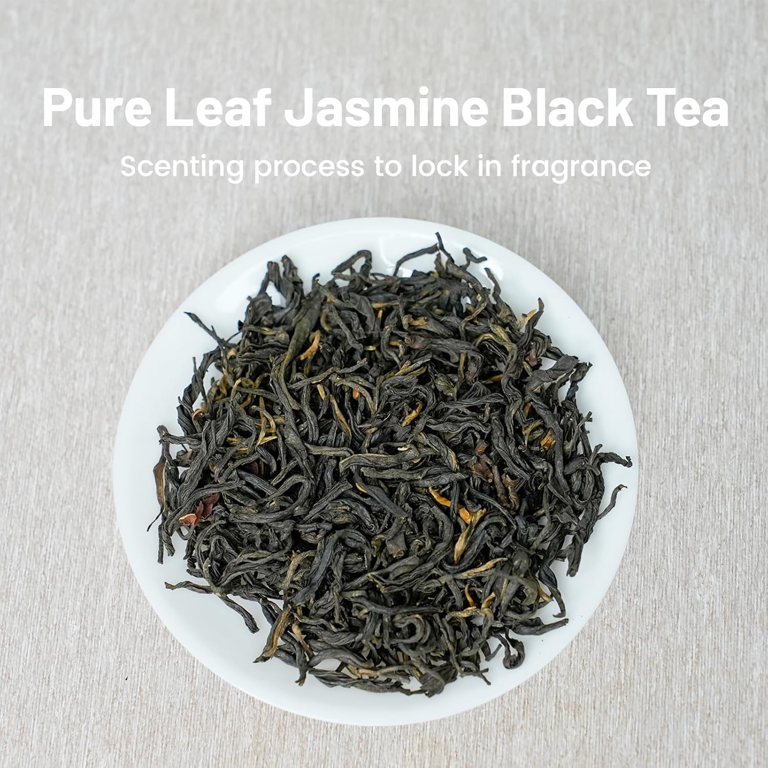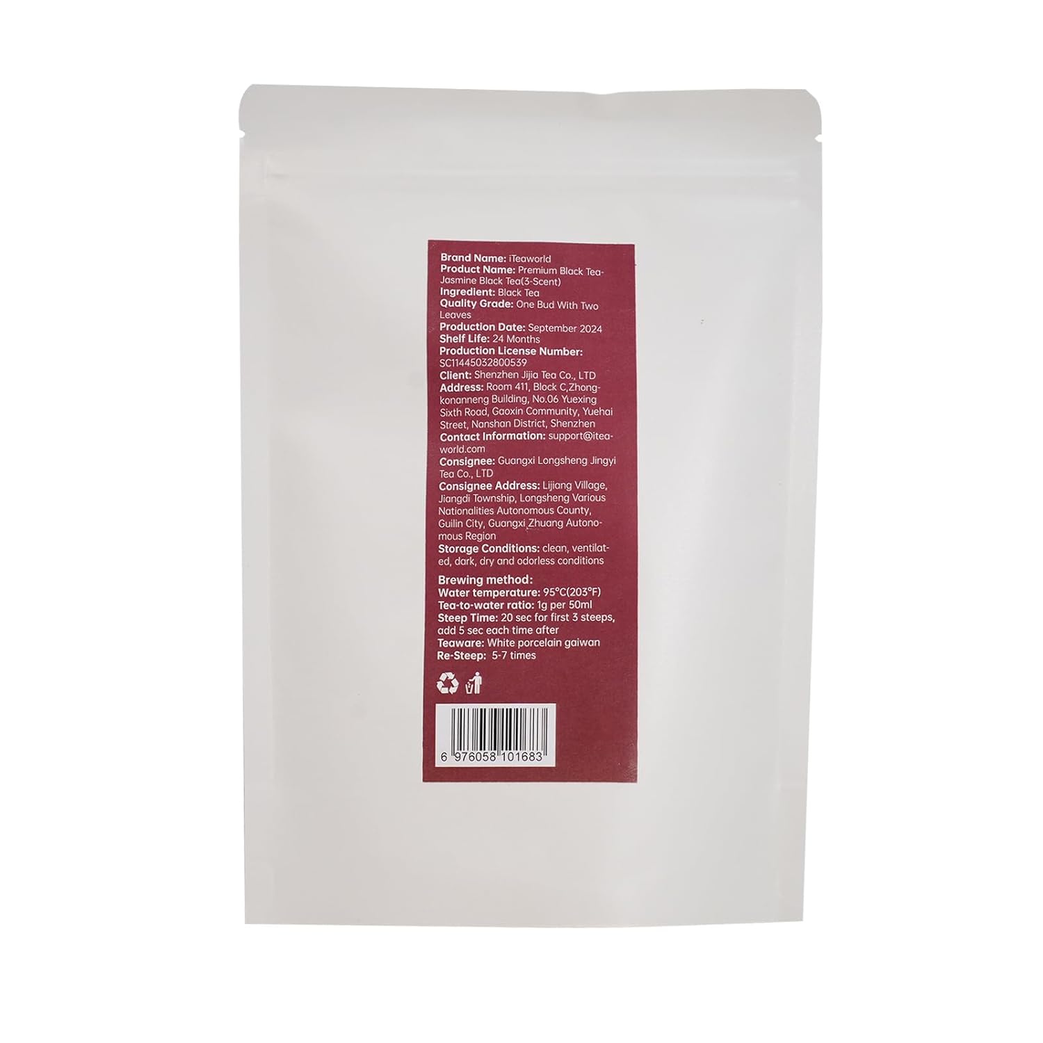 iTeaworld Jasmine Black Tea Loose Leaf, Yunnan High Mountain Black Tea, Scented with Fresh Jasmine Flowers, Rich Floral Aroma, Pure Leaves Without Sugar, No Additive, 1 Bag, 3.52oz