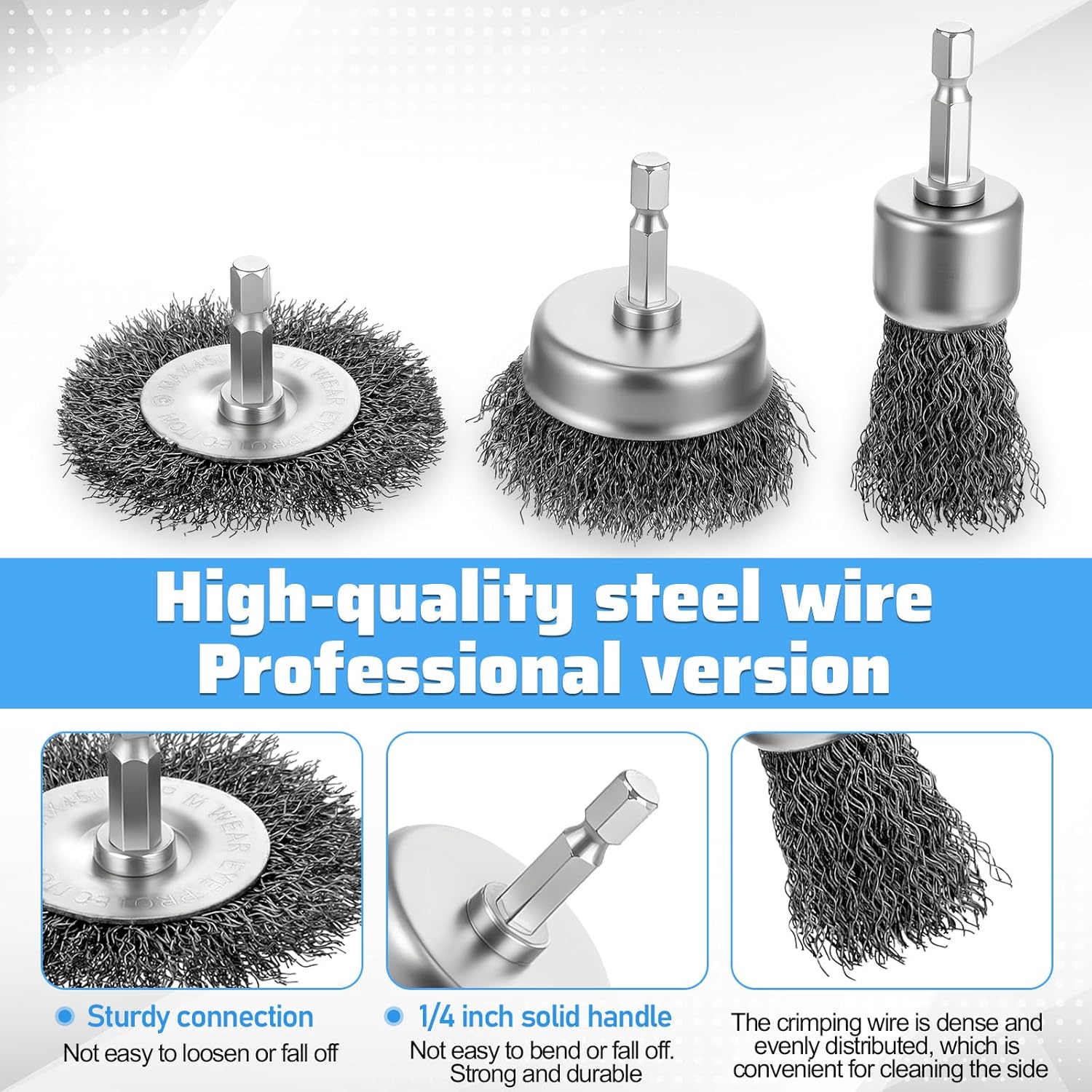 - 【Compatible with Most Drill Bits】The wire wheel set is equipped with a 1/4-inch hexagonal shank, which is suitable for most standard drill bits and die grinders, allowing for easy and quick tool changes.