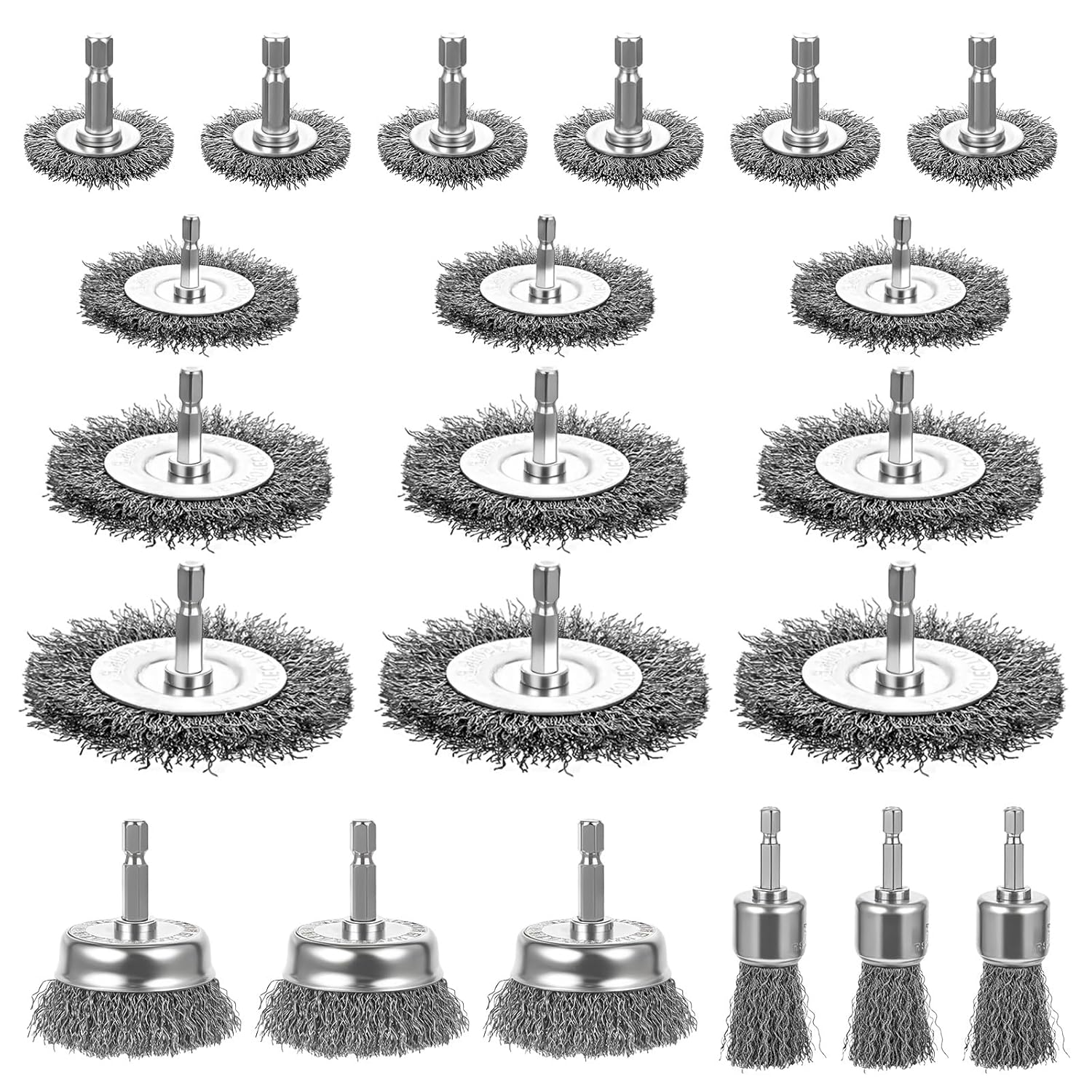21 Packs Carbon Steel Wire Wheel Brush with 1/4-Inch Hex Shank Cup Pen Wheel Brush Set, Wire Brush for Drill for Rust Removal Scrub Surfaces Paint from Metal Wood
