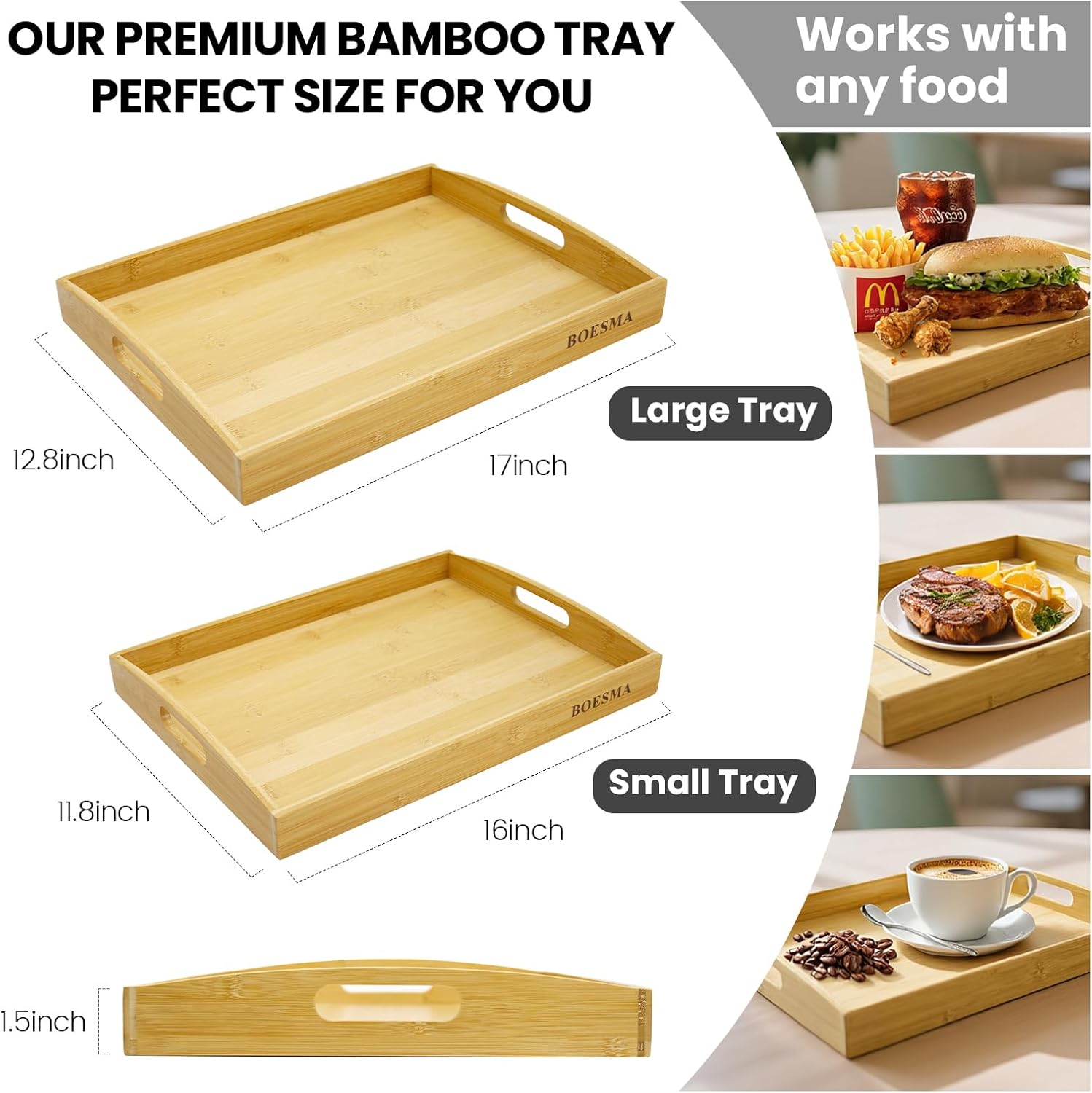 - Multi-Use & Stylish Decor: Bamboo serving tray beyond dining, use as charming display trays for plants, collectibles, or centerpieces. Perfect for family gatherings, parties, cafes, or restaurants. An ideal gift for Mother’s Day, Christmas—thoughtful for all