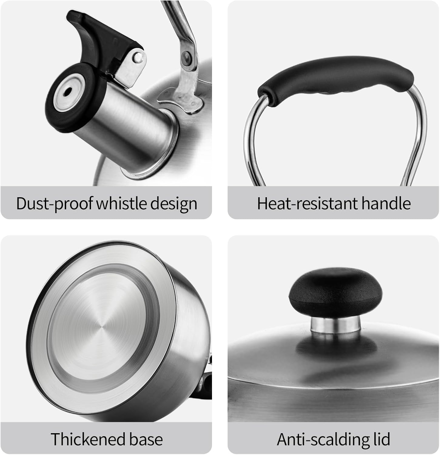 - Premium Food-Grade Stainless Steel: Crafted from durable, odor-free stainless steel, this tea kettle ensures safe boiling without any harmful chemicals, making it ideal for your daily tea or coffee needs.