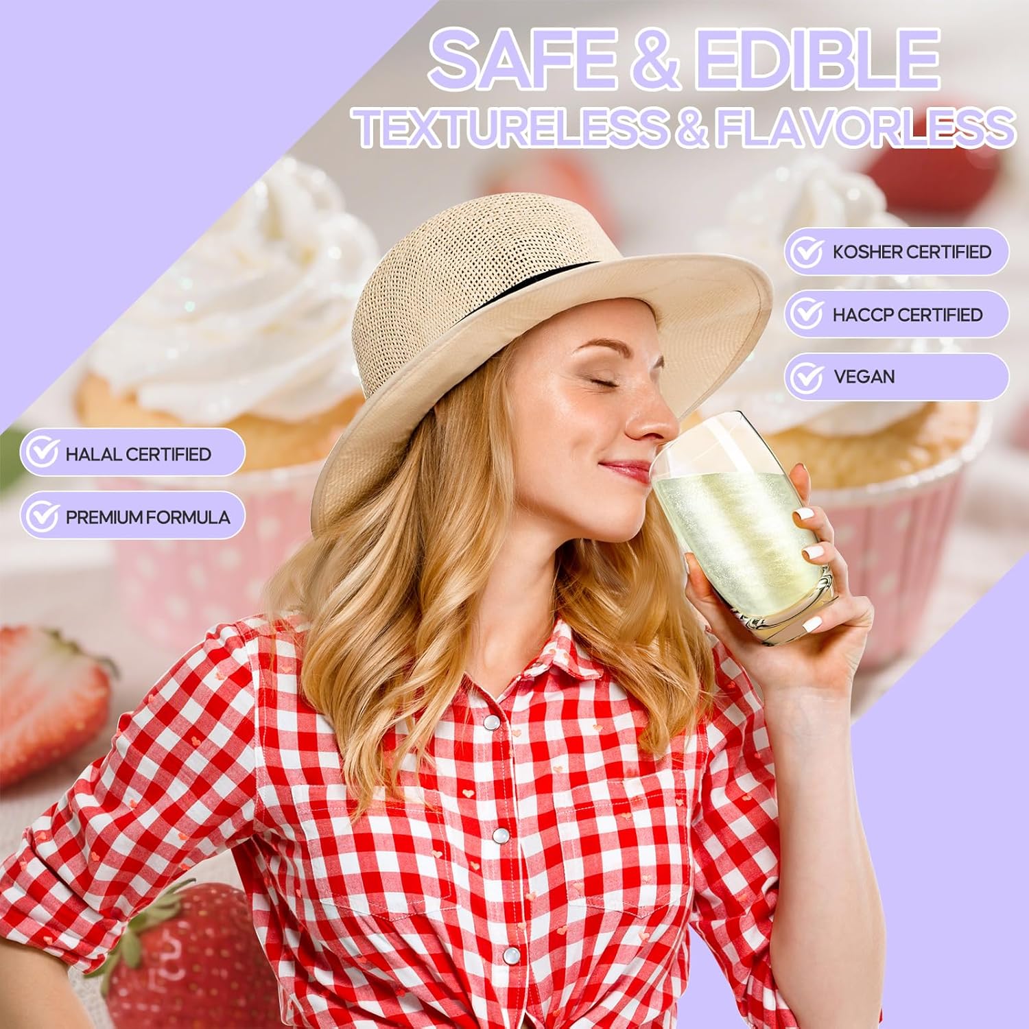 - Food-Safe & Allergen-Free Sparkle - Crafted with certified food-grade ingredients. Gluten-Free, Nut-Free, Dairy-Free & Vegan Friendly. Enjoy tasteless, odorless sparkle that won't alter your food or drink's flavor or texture. Decorate with confidence!