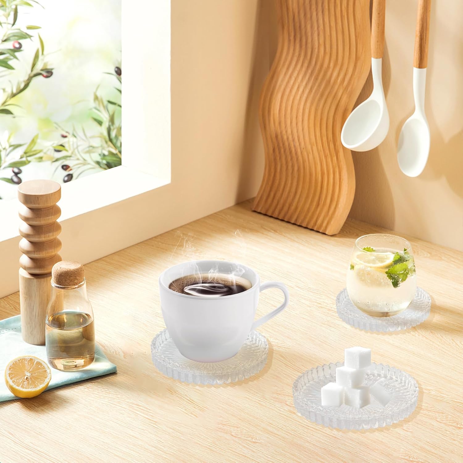 Glass Coaster 6 Pack Round Cup Coasters for Drinks,Crystal Coffee Coaster,Stylish Drink Coasters for Kitchen Bar Dining Room Living Room Office Decor and Jewelry Storage,Clear