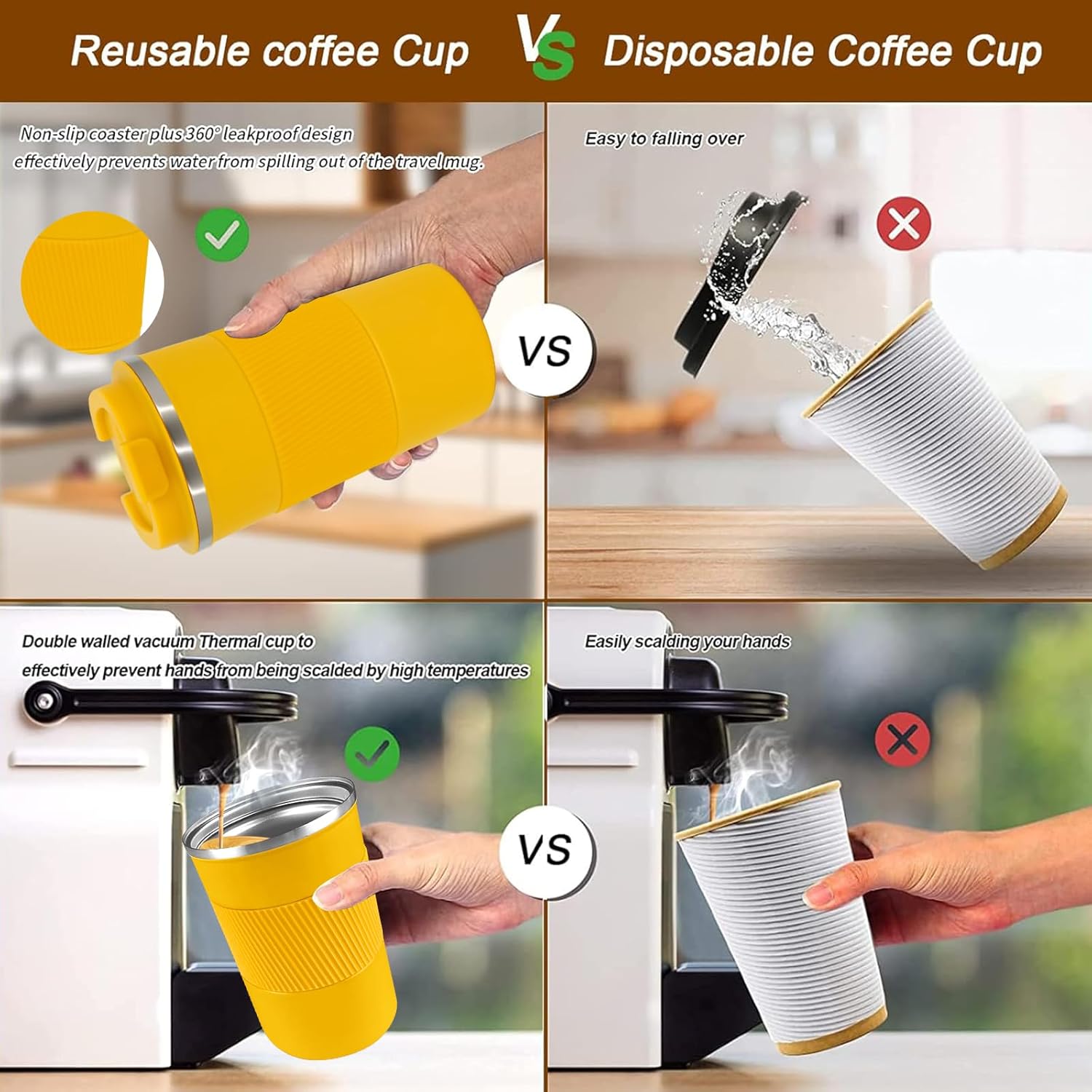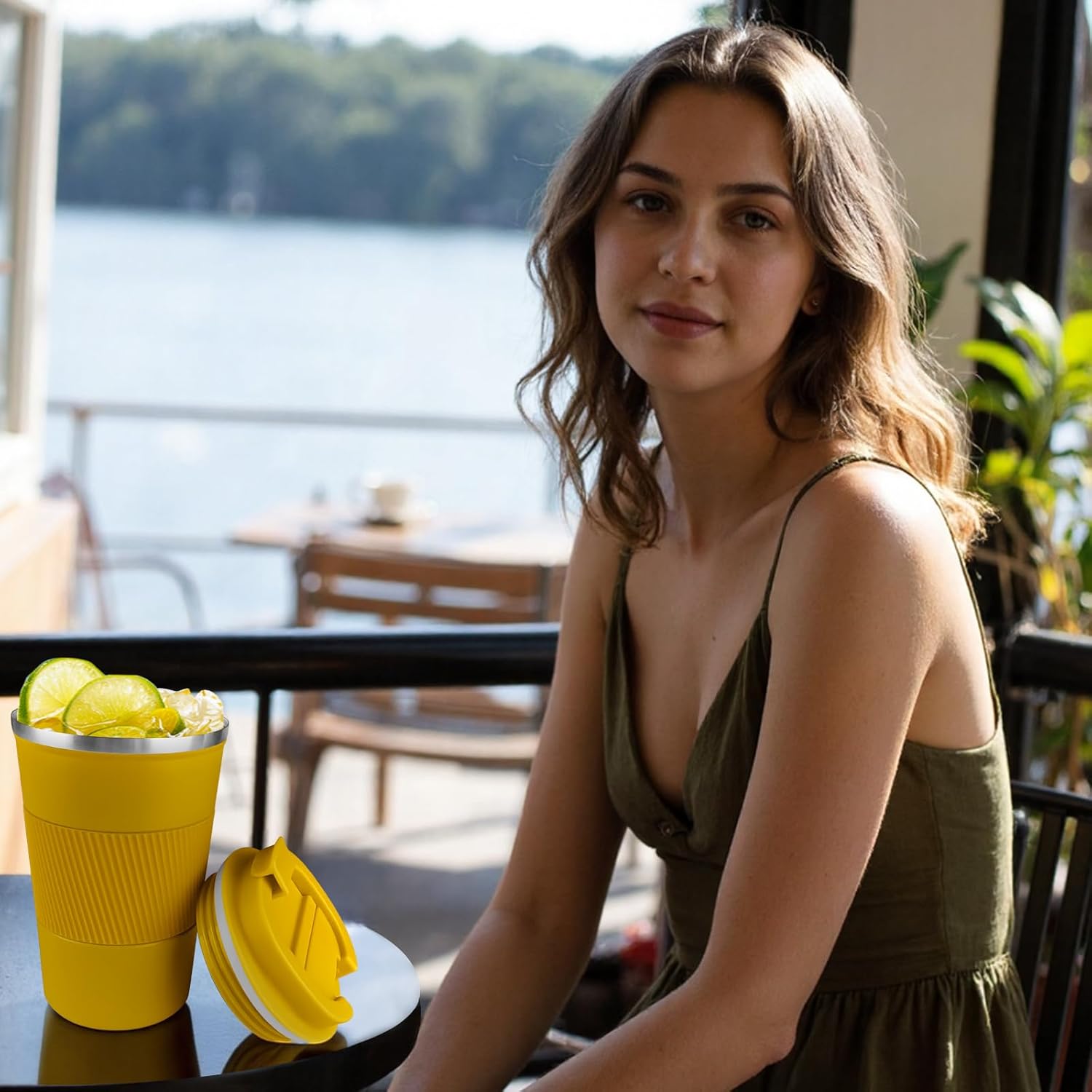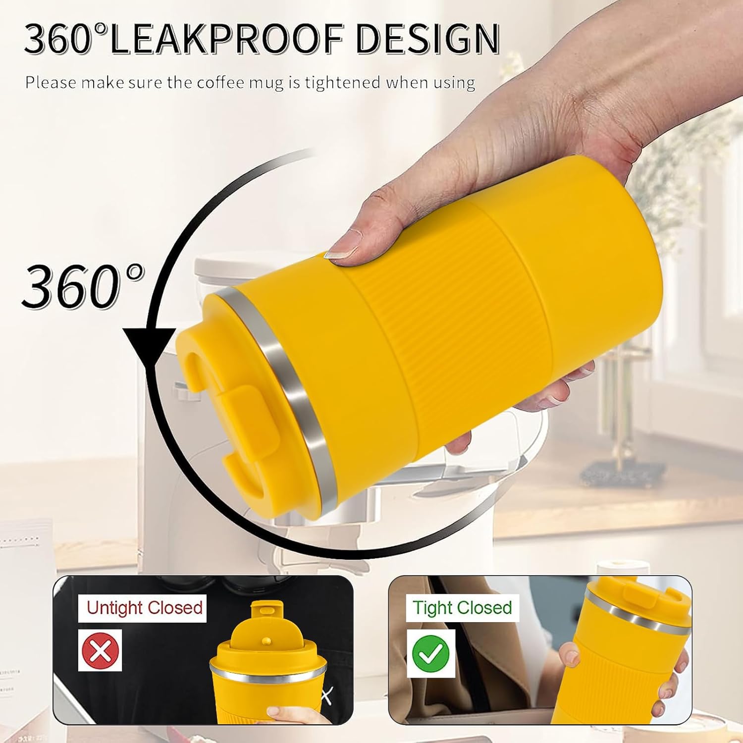 YINBAOGE Insulated Travel Coffee Mug, Spill & Leak Proof, Portable To Go Camping Stainless Steel Coffee Tumbler, Reusable Thermal Coffee Cup with Lid for Hot & Cold Drinks (Yellow, 12 OZ)