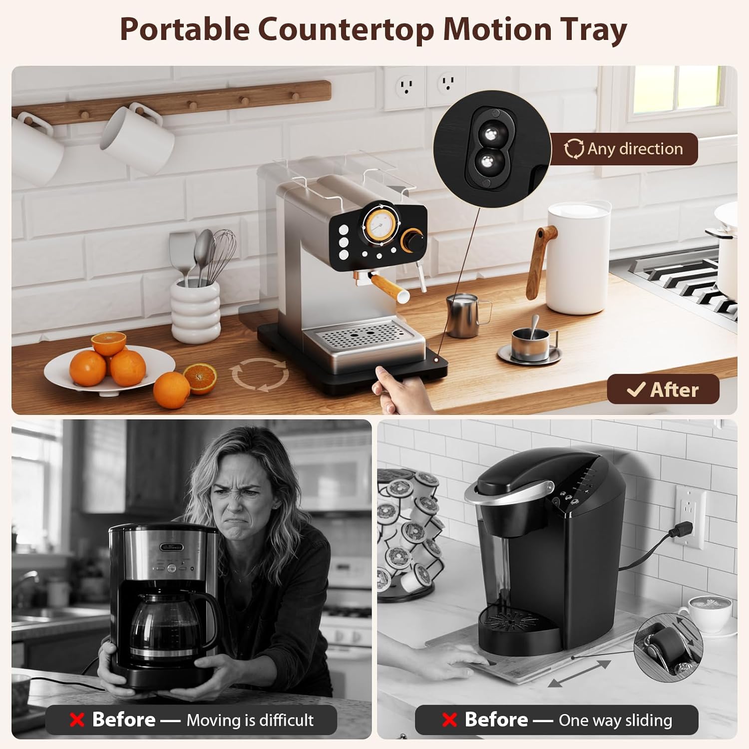 - 【360° Rotation Appliance Slider】Equipped with smooth rollers for all-around mobility, this feature effortlessly facilitates more flexible movement of various kitchen appliances than other one-way sliding trays