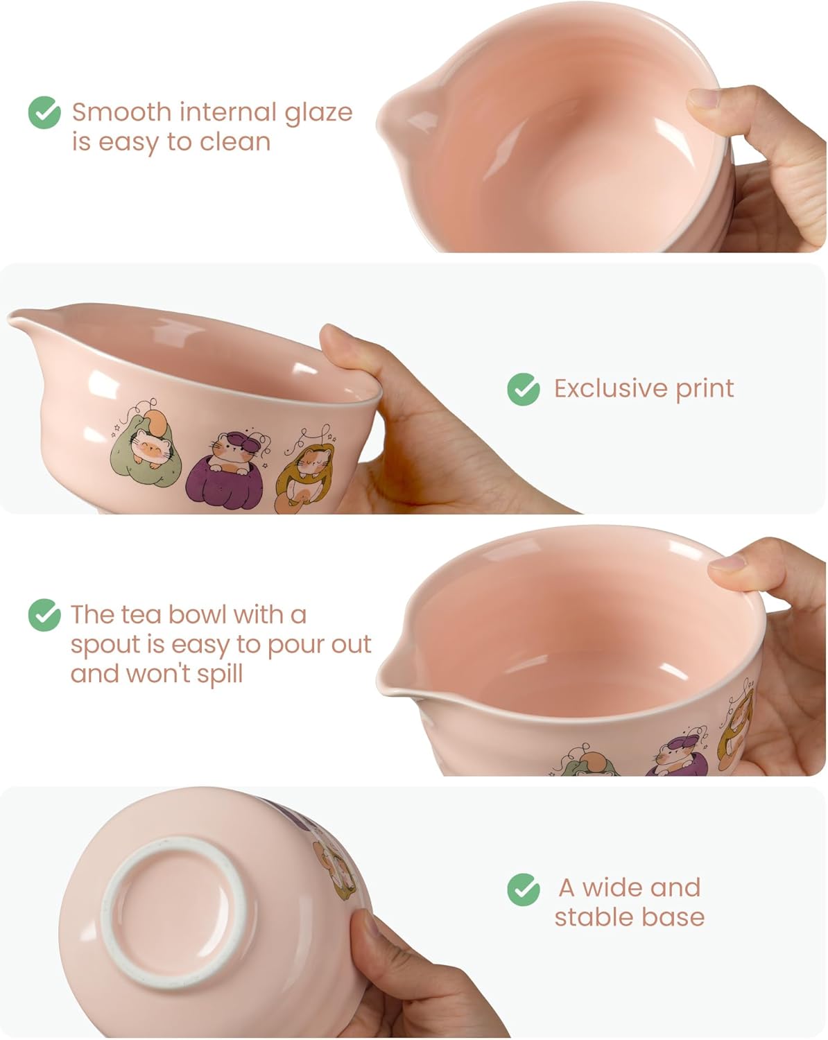 - Elegant & Safe Glazed Interior – Our ceramic matcha bowl is crafted with a smooth, lead-free glazed interior that resists tea stains and ensures effortless cleaning. The polished finish not only enhances the artistic beauty of this matcha tea set but also guarantees safe, non-toxic matcha preparation for daily use.