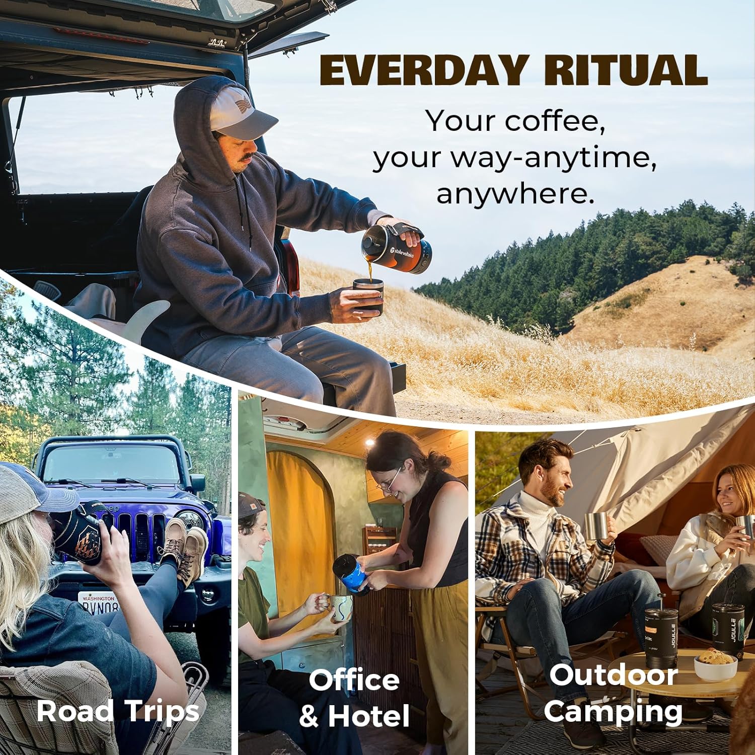 - Coffee Anywhere, Anytime: Enjoy fresh French press coffee at camp, on the road, in your RV, or during quick office breaks. Lightweight and portable coffee maker with 120V power compatibility lets you brew without boundaries.
