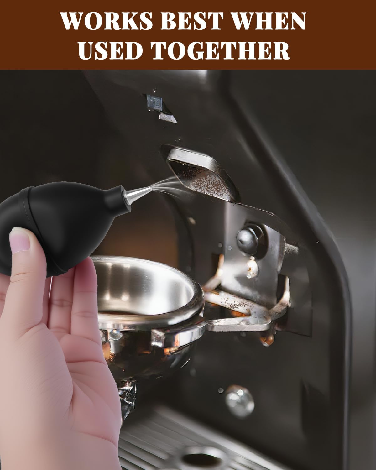 - All-in-One Espresso Maintenance Solution: Simplify your barista routine with this two-piece espresso cleaning brush set. Use the brush for coffee residue removal and the blower for dust-free surfaces. Ideal for daily use, it helps maintain flavor consistency and prevents residue buildup—perfect for both café and home setups