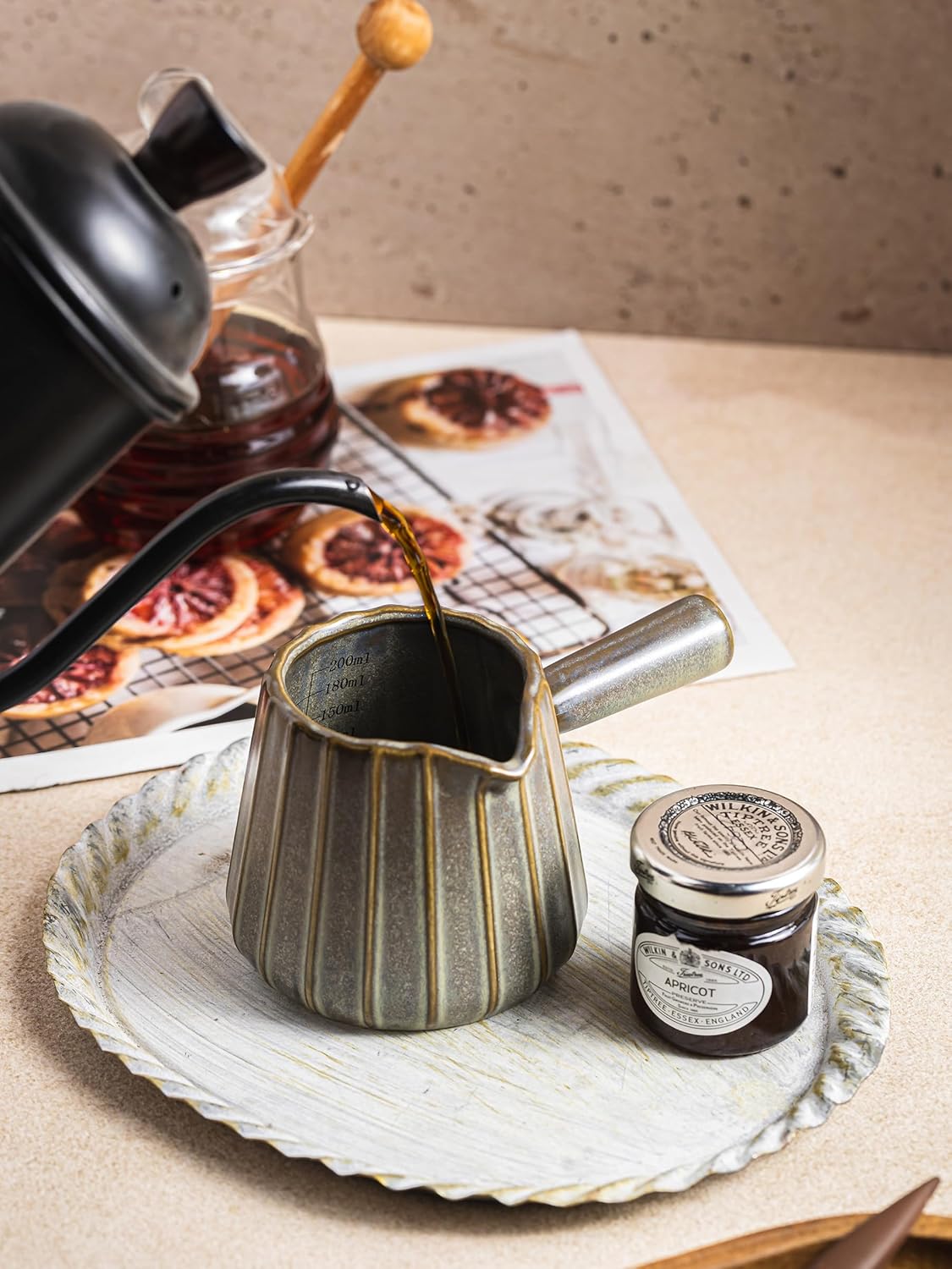 - Convenient Pouring Spout – Designed with a single spout for smooth, controlled pouring without messy drips—ideal for espresso brewing, milk frothing, or serving sauces