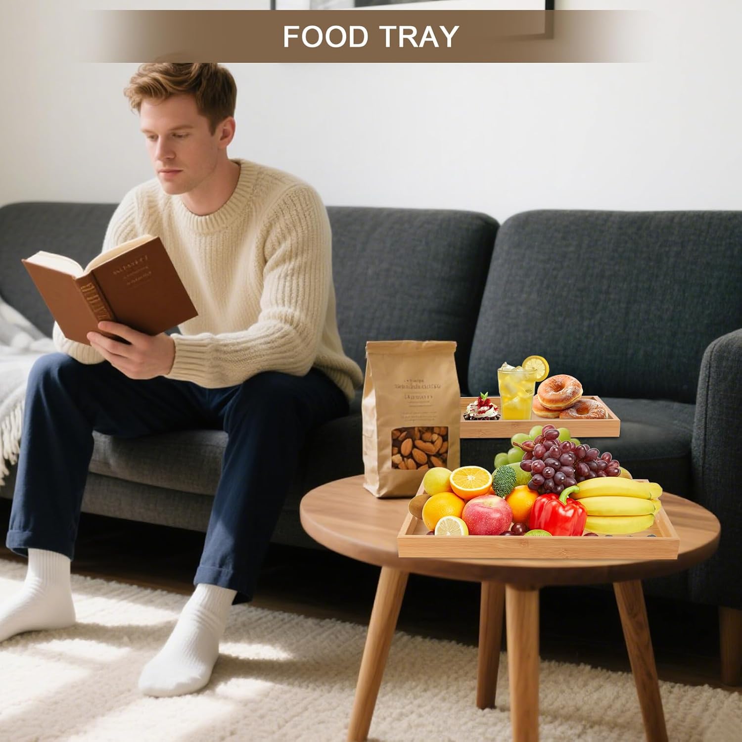 - Multi-functional Wooden Tray : This wood serving tray is not only for serving breakfast, lunch, dinner, snacks or any meal. but also for decor and storage , like showing candles, jewelry, candies, books, fruits ect, Apart from everyday use, this serving tray can also be used during family activities, parties , commercial or outdoor use
