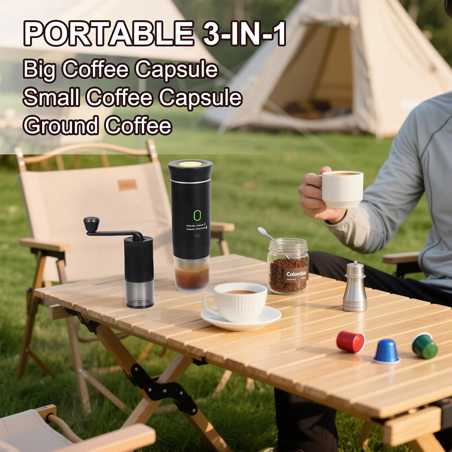 - Portable Barista Set: The compact electric espresso machine pairs with a manual coffee grinder, eliminating power dependency. Perfect for camping, travel, hiking, car, home, office, or your office desk—enjoy cafe-quality coffee without boundaries