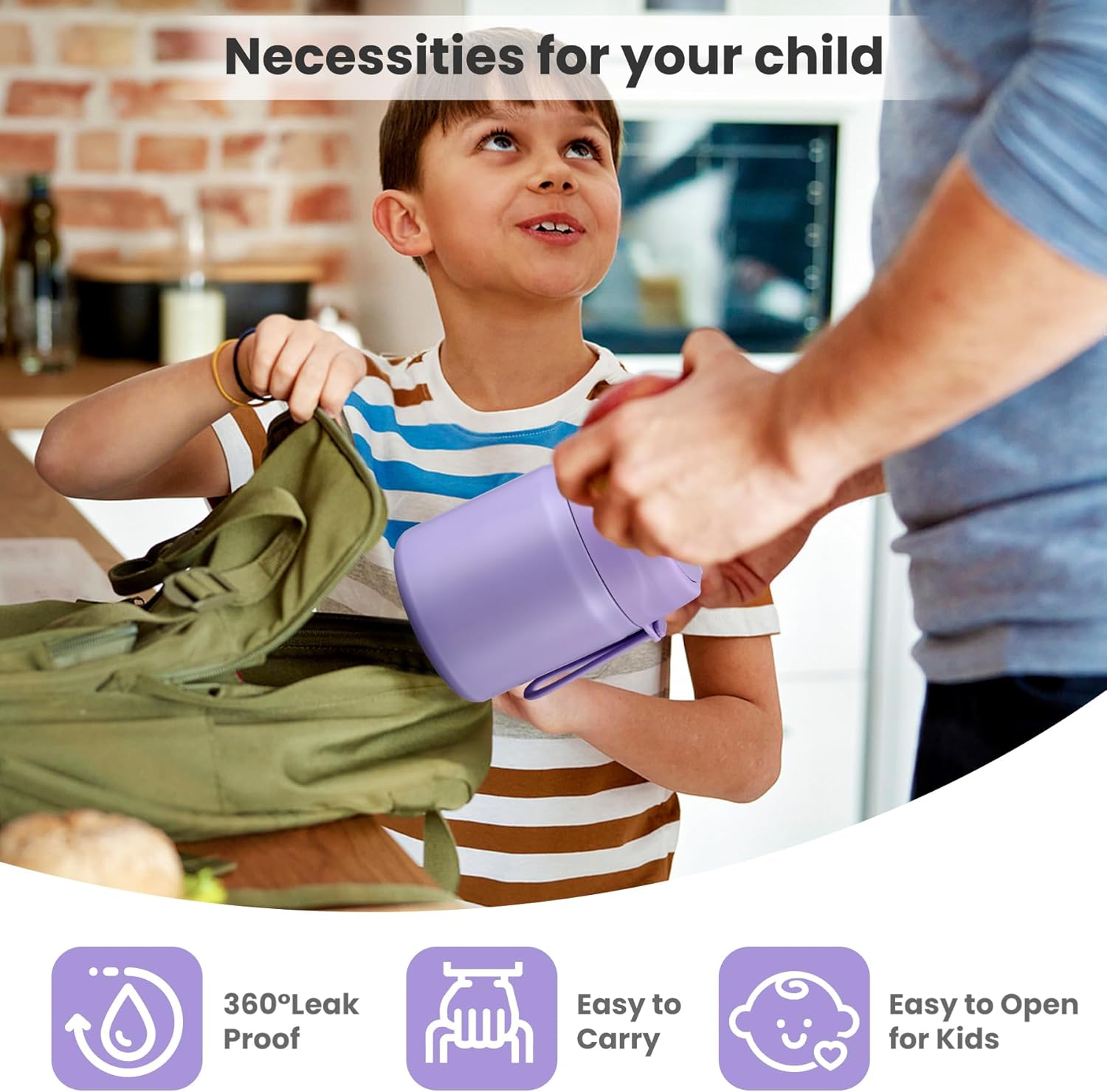 - Leak-Proof Design: Featuring an upgraded double-layer silicone seal that provides a 360° leak-proof guarantee. Rest assured that our leak-proof thermo food jar can fit in your lunch bag without worrying about spills. The insulated thermal food jar comes with a stainless steel spoon for your child's convenience.