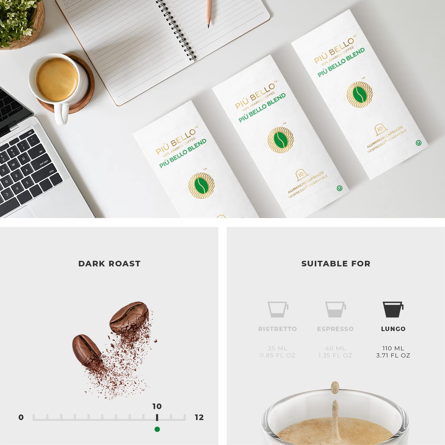- NESPRESSO COMPATIBLE PODS - Enjoy delicious cafe quality roasted coffee, brewed fast and poured steaming hot & fresh directly into your awaiting cup. Piu Bello Nespresso capsules are compatible with Nespresso Original line espresso machine.