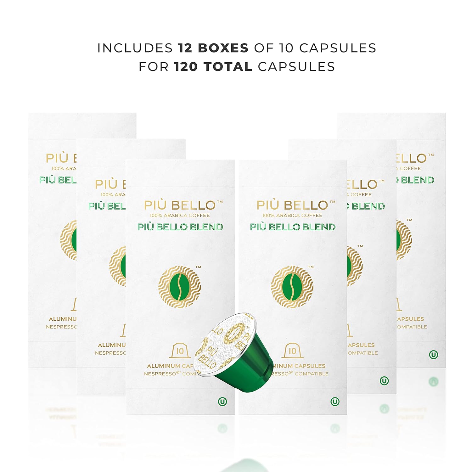Piu Bello Blend Espresso Coffee Pods for Nespresso Original Machines – Compatible Capsules Pack – Rich & Balanced Taste – Strong Italian Espresso Flavor – Kosher Certified (120 Count, Single Flavor)