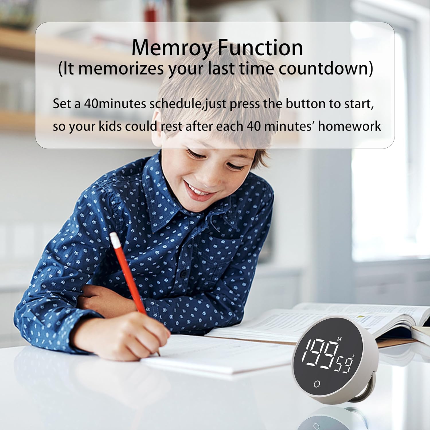 - 【Smart Energy-saving Mode】: The cook timer features 2 brightness modes. In the working mode, the brightness automatically decreases after 5 seconds of inactivity. In the energy-saving mode, the brightness reduces after 5 seconds of inactivity, and the screen automatically turns off after 10 seconds of inactivity. To awaken the screen again, simply rotate the knob without pressing any buttons.