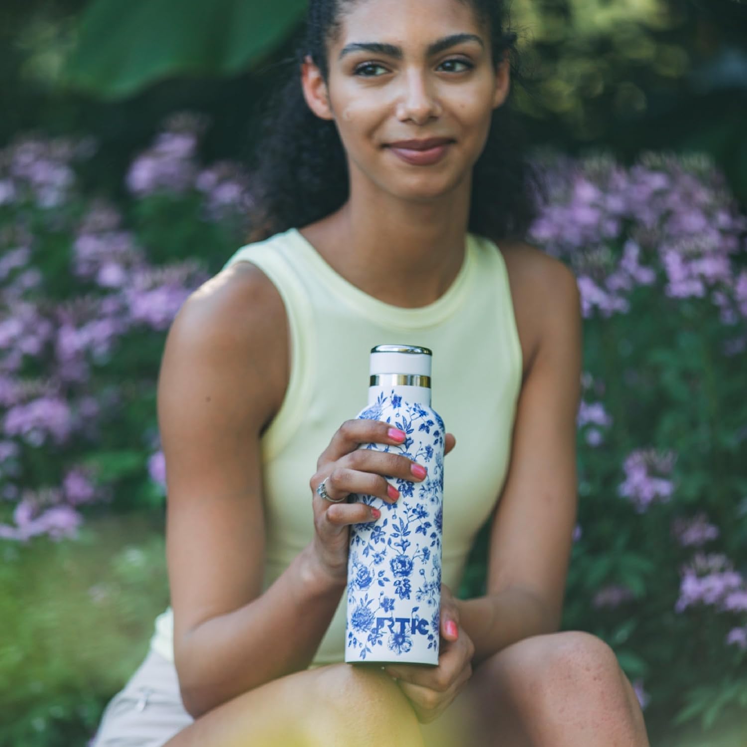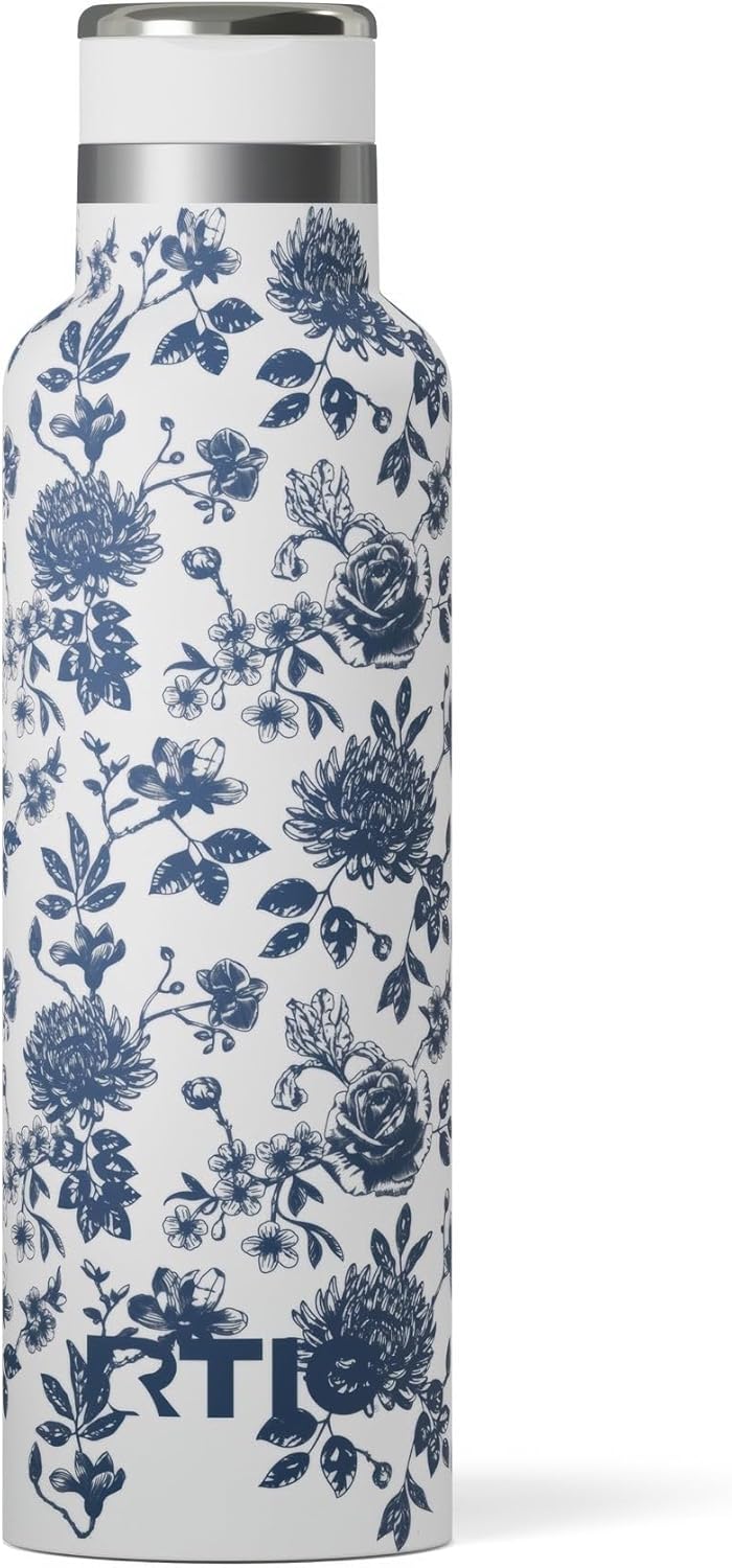 RTIC 20oz Journey Bottle Metal Stainless Steel Vacuum Insulated, BPA Free, Reusable, for Water, Hot and Cold Drinks, Travel, Sports, Camping, Blue Bouquet
