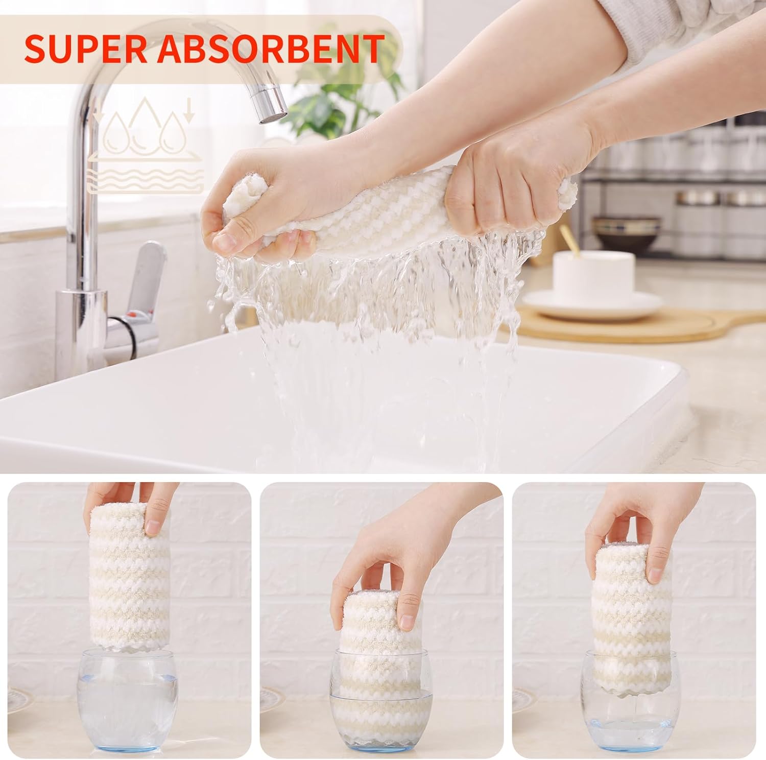 - Super soft and Absorbent: Experience the luxurious softness of our dish towels. They are crafted with high-quality materials which feels soft and won't scratch your hands or any surfaces. Strong water absorption, easily absorb liquid and overflow, make the surface clean and dry.