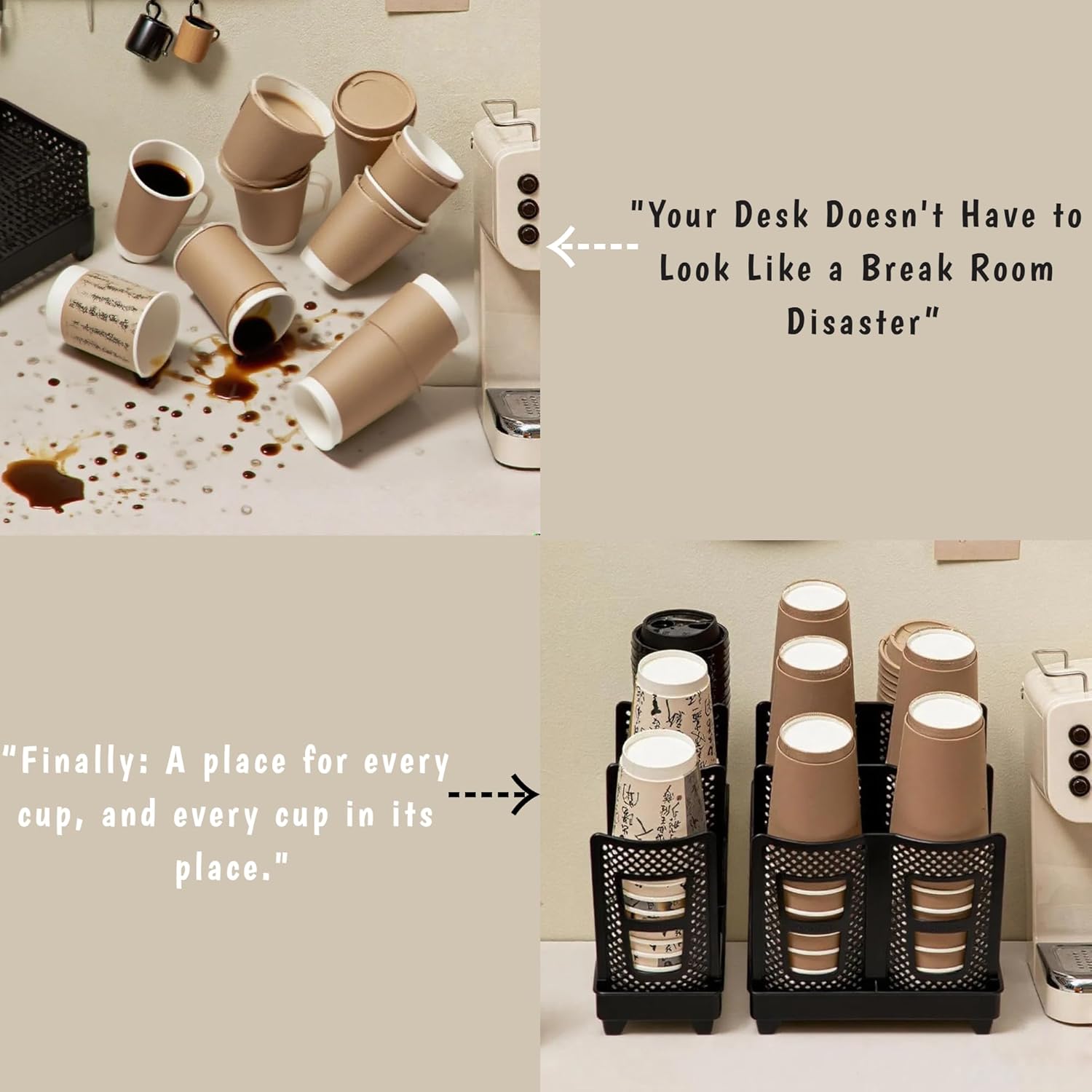 Cup Lid Dispenser and Dispenser Organizer Cup Display Stand,24 oz Plastic Coffee Cup Holder for Countertop,6Slots,Cup Display Stand on Restaurant,Bathroom,Kitchen,Coffee Shop